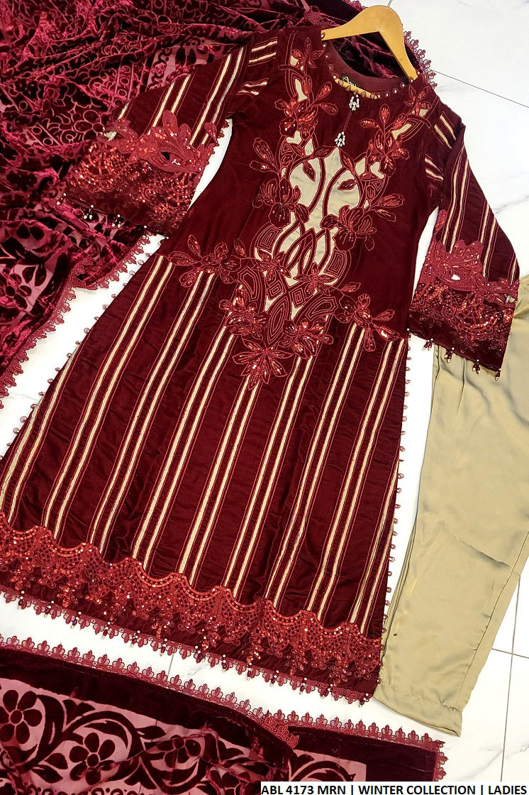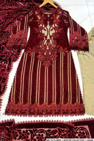 1. The outfit showcases a luxurious combination of fabrics, with the shirt and dupatta crafted from rich velvet, adding a plush and elegant texture to the ensemble. The trousers are made from smooth silk, providing a contrasting yet harmonious feel. The style of the shirt is A-line, with a length measuring 48/50, offering a flattering and modern silhouette. The total weight of the outfit is 1.150 kg, making it slightly heavier but exuding a sense of opulence and sophistication. This blend of velvet and silk, paired with the A-line shirt design, creates a striking and refined look perfect for special occasions.