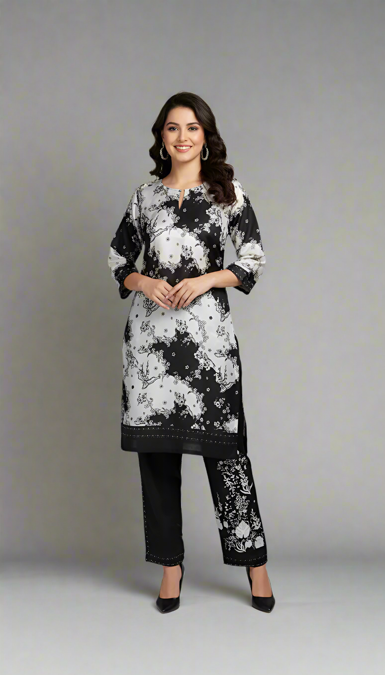 This elegant ensemble features a luxurious silk shirt paired with matching silk trousers, styled in a contemporary straight shirt with plazo silhouette. The outfit includes a two-piece, complementing the entire look with grace and sophistication. The shirt comes in a versatile length of 38 to 40 inches, making it ideal for both casual and semi-formal wear. With a lightweight feel of 0.350 kg, it ensures comfort without compromising on style.