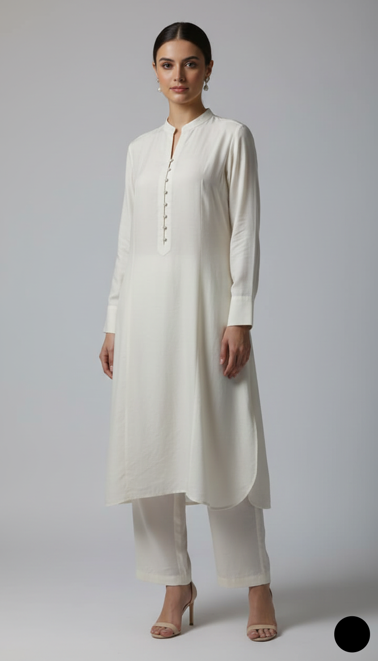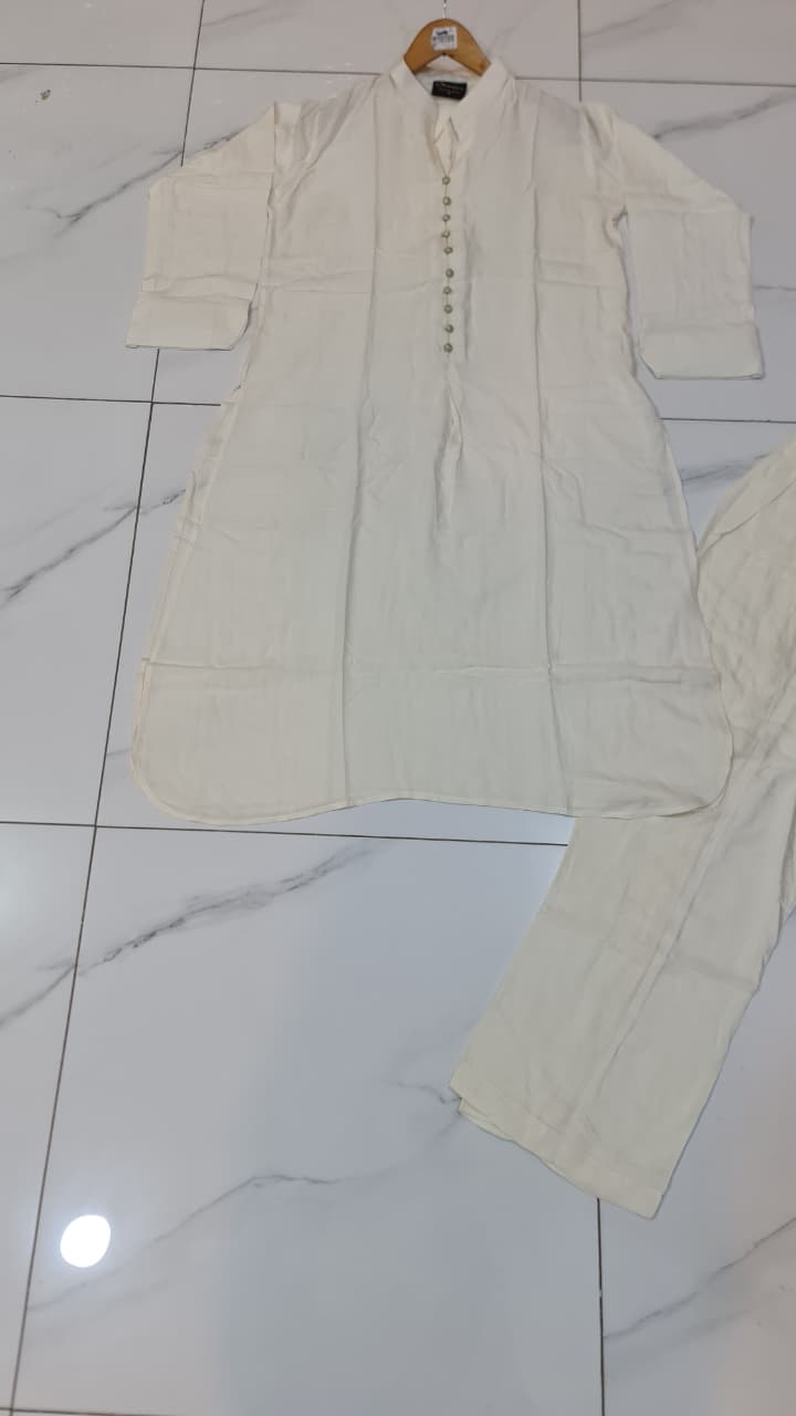 This stylish outfit is made from premium-quality Linen fabric for both the shirt and trouser, offering comfort, breathability, and durability. Designed in a classic Goal Daman Shirt style, the shirt length ranges between 43 to 45 inches, giving it a graceful and flattering fall. With a total weight of 0.550 kg, this ensemble provides a perfect balance of structure and comfort, making it ideal for both casual and semi-formal wear.