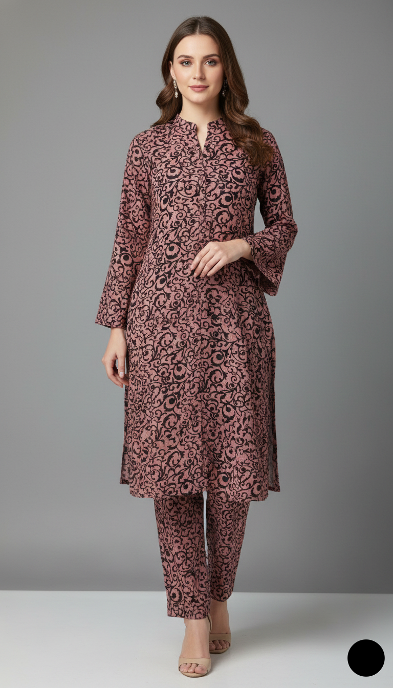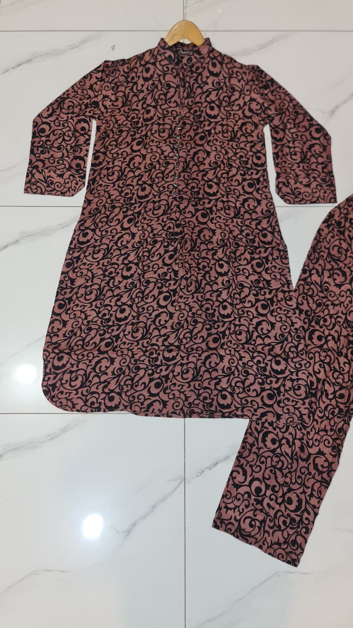 This elegant outfit is crafted from high-quality Linen fabric for both the shirt and the trouser, offering comfort and durability. Designed in a stylish Goal Daman Shirt pattern, the shirt length ranges between 41 to 43 inches, creating a neat and graceful silhouette. With a lightweight feel at just 0.300 kg, this ensemble is perfect for everyday wear, combining ease, style, and refined simplicity.