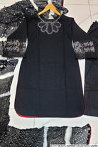 This stylish 3-piece outfit features a soft and breathable cotton Gol Daman shirt, paired with comfortable cotton trousers. The set is completed with a light and flowy chiffon dupatta, adding a touch of elegance. The shirt length ranges from 40 to 42 inches, offering a modest and graceful fit. With a total weight of just 0.500 kg, this ensemble is perfect for effortless, all-day wear in warmer seasons.