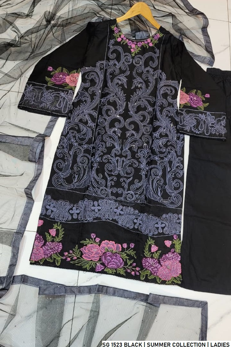 This chic and versatile outfit features a Straight Shirt made from breathable and durable cotton fabric, offering both style and comfort. Paired with matching cotton trousers, the outfit ensures a cohesive and polished look. The net dupatta adds a touch of elegance and delicacy, perfect for elevating your ensemble for both casual and semi-formal settings. The shirt has a flattering length of 44 to 46 inches, making it suitable for a variety of body types. The complete outfit weighs approximately 0.500 kg, making it lightweight and easy to wear.