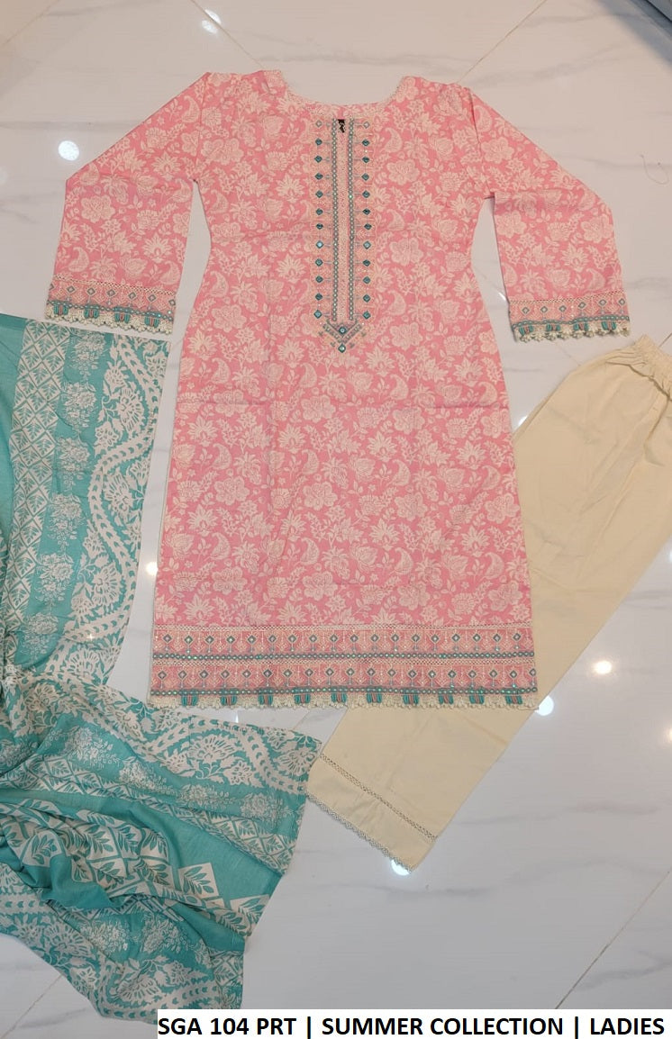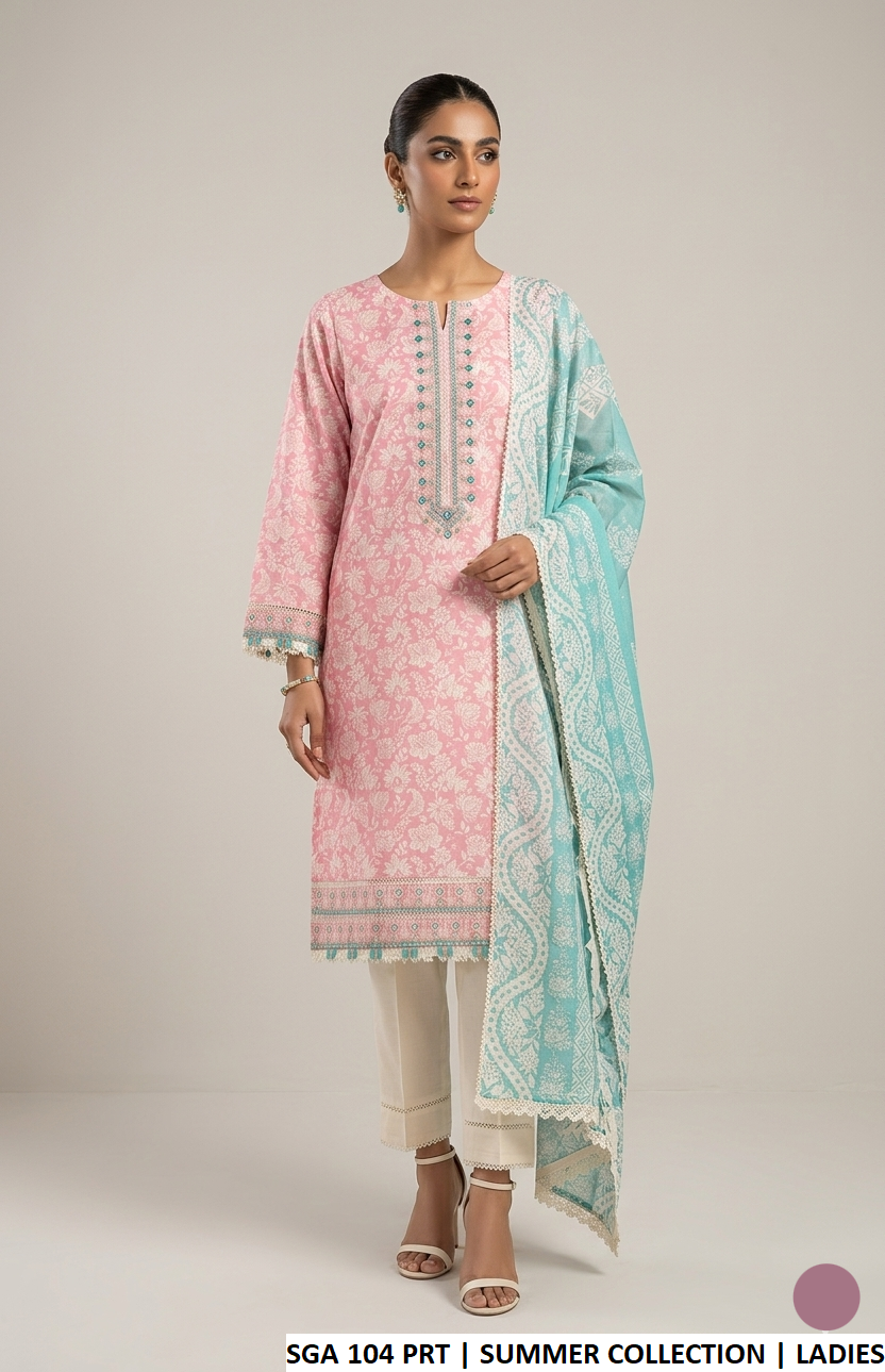 This stylish outfit is crafted with a soft and breathable lawn shirt paired with a comfortable cotton trouser and a matching lawn dupatta. The elegant A-line shirt design provides a flattering and relaxed fit, making it suitable for daily wear and casual gatherings. With a shirt length ranging from 43 to 45 inches and a lightweight weight of 0.500 KG, this outfit combines comfort, style, and practicality for all-day wear.
