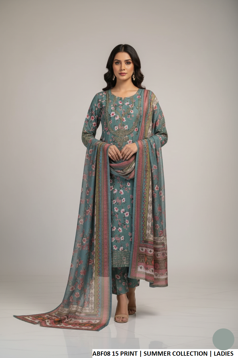 This elegant outfit features a soft cotton long frock paired with matching cotton trousers and a digitally printed dupatta. Designed for a flowing, graceful silhouette, it offers both comfort and style. With a shirt length of 45 to 47 inches and a lightweight feel of approximately 0.550 kg, this ensemble is perfect for casual gatherings, daily wear, or festive occasions.