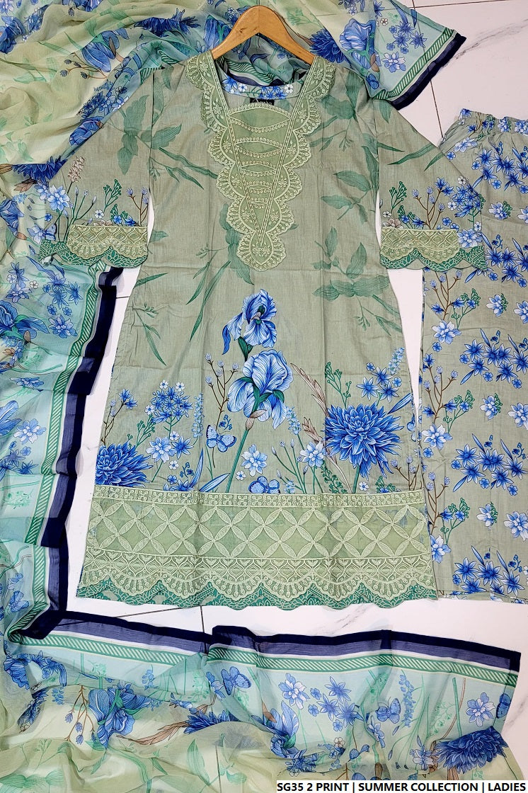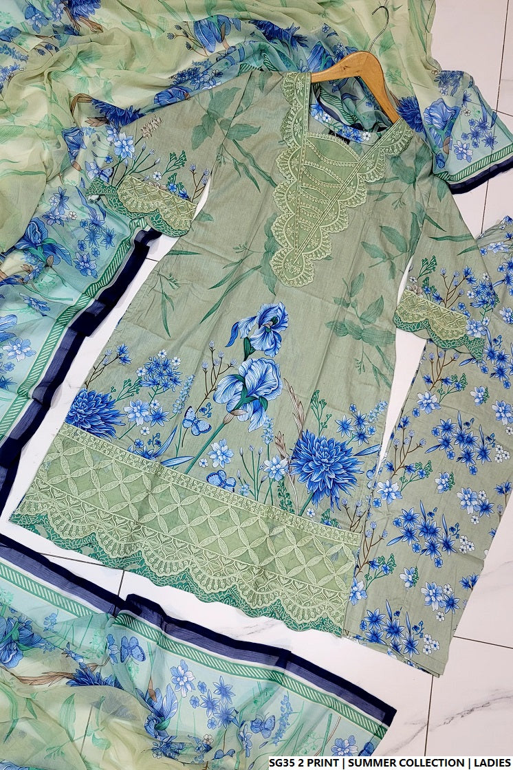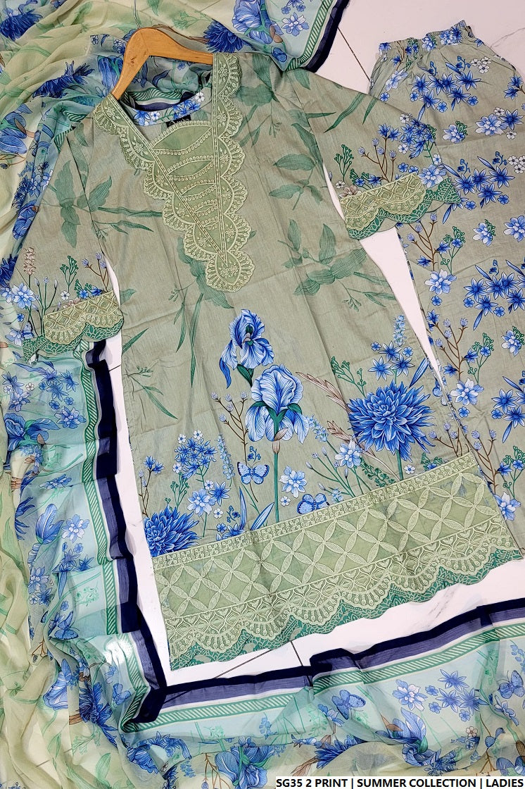 This graceful three-piece outfit is crafted with premium lawn fabric for both the shirt and trouser, offering breathability and comfort for daily wear. The shirt features a straight cut design with a flattering length of 43 to 45 inches, suitable for a modest yet stylish look. The digitally printed chiffon dupatta adds a touch of elegance and flow to the ensemble. With a total weight of just 0.550 kg, this outfit is lightweight and easy to wear in warmer seasons or on relaxed occasions.