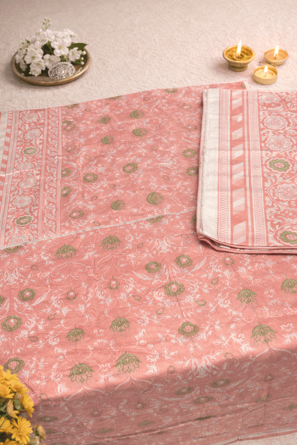 Machine wash cold, gentle, or delicate | Soak and wash dark and light colors separately | Do not use bleach or stain removing chemicals | Line dry in shade | Iron at medium heat | Dry clean | Do not dry in direct sunlight.
