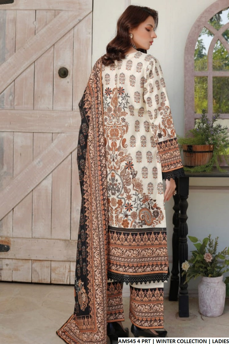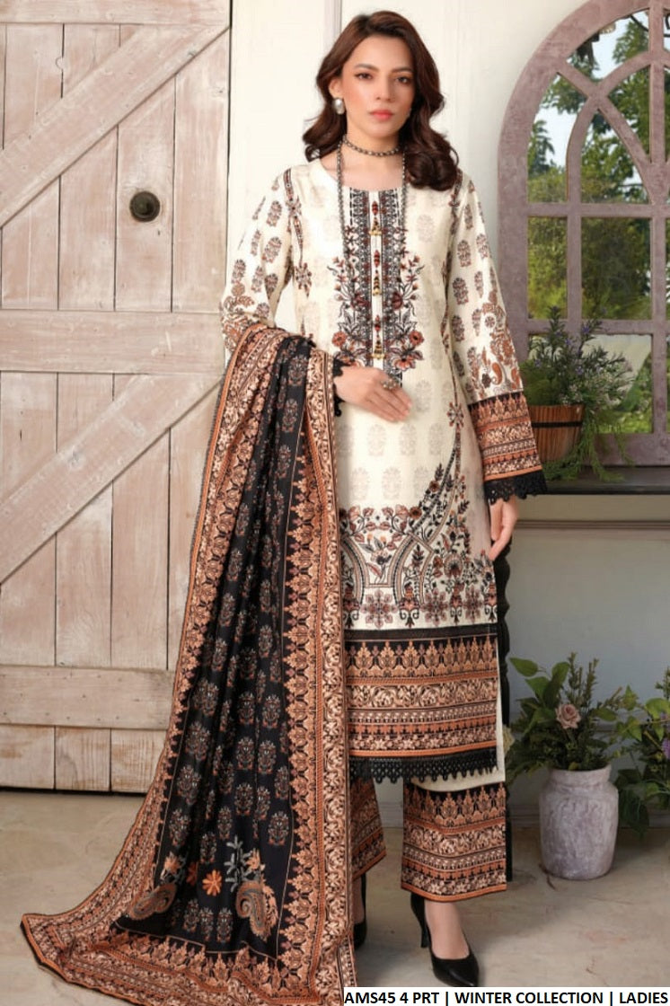- This stylish ensemble is made from warm winter cotton fabric for both the shirt and trousers, ensuring comfort and coziness during the colder seasons. The digital printed shawl dupatta adds a contemporary touch, enhancing the overall look with its vibrant design. Styled as a straight shirt with plazo, the shirt length is 40 to 42 inches, creating a sleek and modern silhouette. Weighing only 0.85 kg, this outfit is perfect for casual or semi-formal occasions, combining elegance and practicality in one chic ensemble.