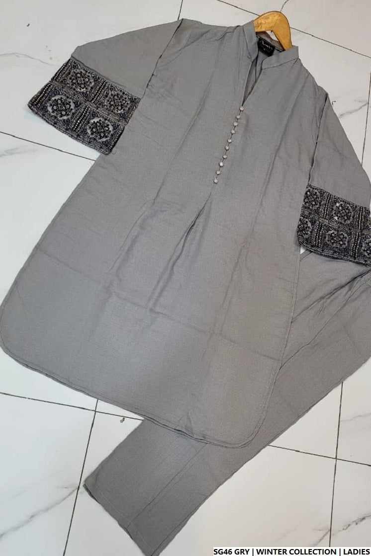This beautifully crafted 2-piece outfit features a traditional Gol Daman shirt made from premium Dhanak fabric, known for its soft texture and winter-friendly comfort. Paired with matching Dhanak trousers, this set is perfect for creating a modest yet stylish look. With a shirt length of 40 to 42 inches, it offers graceful coverage and a flattering silhouette. Weighing only 0.450 kg, this lightweight ensemble is ideal for daily winter wear or casual gatherings.