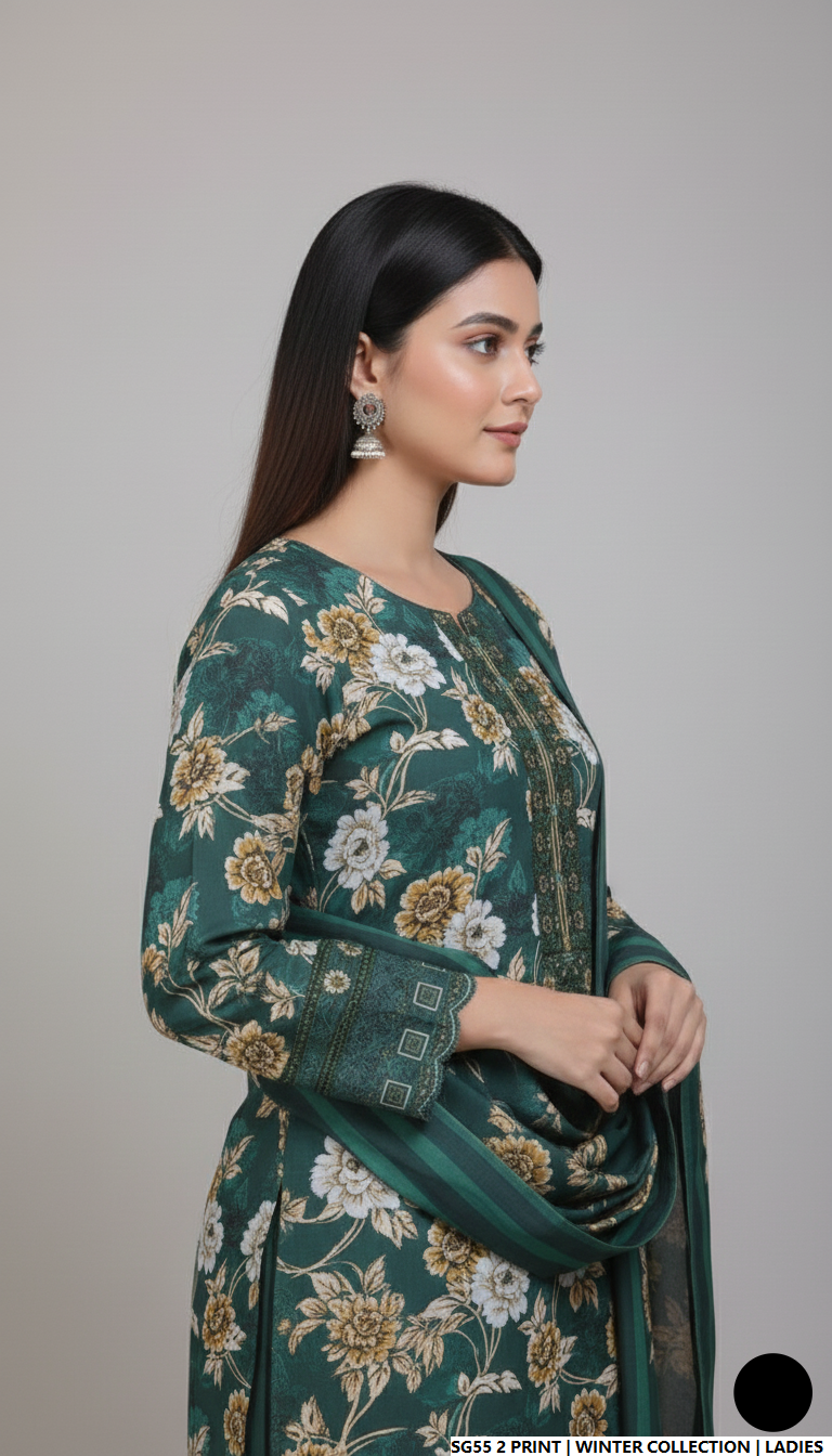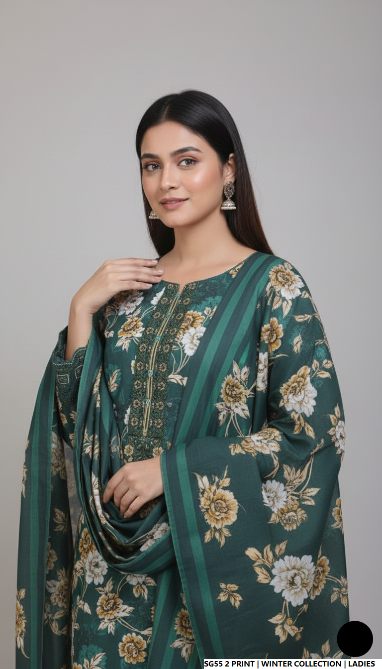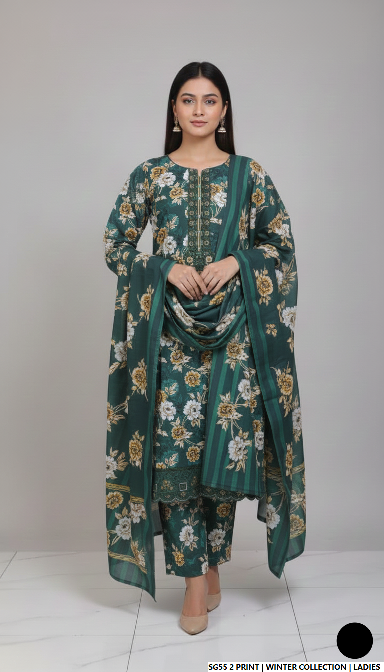 This beautiful ensemble is made from premium Khaddar fabric, offering a perfect balance of warmth, comfort, and durability. The straight shirt style, with a length of 42/44 inches, creates a classic and graceful silhouette suitable for all occasions. The Khaddar trouser complements the shirt, providing a cohesive and polished look. Completing the outfit is a Khaddar shawl dupatta, adding both elegance and functionality for the winter season. With a total weight of 0.800 KG, this outfit ensures comfort, style, and sophistication throughout the colder months.