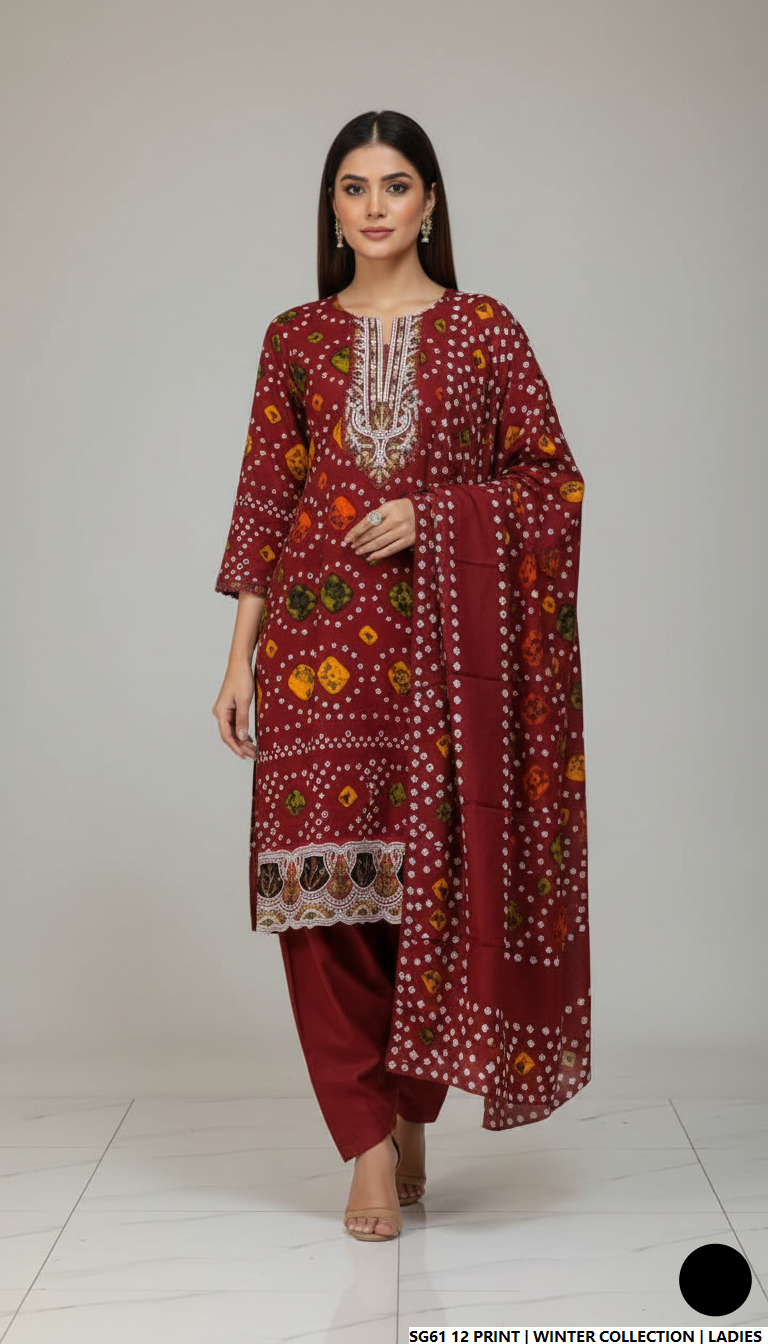 This beautifully crafted outfit features premium Slub Khaddar fabric for both the shirt and trouser, ensuring durability, comfort, and warmth. It is paired with a cozy Khaddar Shawl dupatta, adding a refined winter touch to the ensemble. Designed in a classic straight-shirt style, the shirt length ranges from 41 to 43 inches, offering a modest and elegant silhouette. With a total weight of 0.900 kg, the outfit provides a substantial yet comfortable feel, perfect for colder weather.