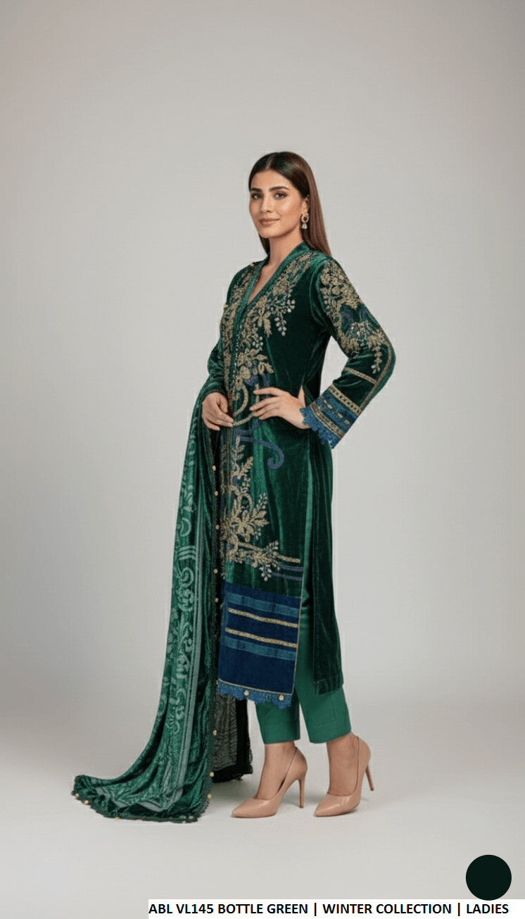 This elegant outfit features a luxurious velvet shirt paired with comfortable viscose trousers and a graceful Palachi shawl dupatta. Designed in a classic A-line shirt style, it offers a flattering silhouette with a shirt length of 43 to 45 inches. The complete ensemble has an approximate weight of 1.300 kg, making it ideal for formal and festive wear.