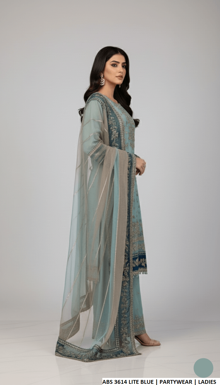 This stylish ensemble features a straight-cut shirt made from soft and flowy chiffon fabric, paired with comfortable grip fabric plazzo trousers. The look is enhanced with a lightweight organza dupatta, creating a perfect balance of elegance and comfort. With a shirt length ranging from 44 to 46 inches and a structured yet graceful silhouette, this outfit is ideal for formal events, festive wear, and special occasions.