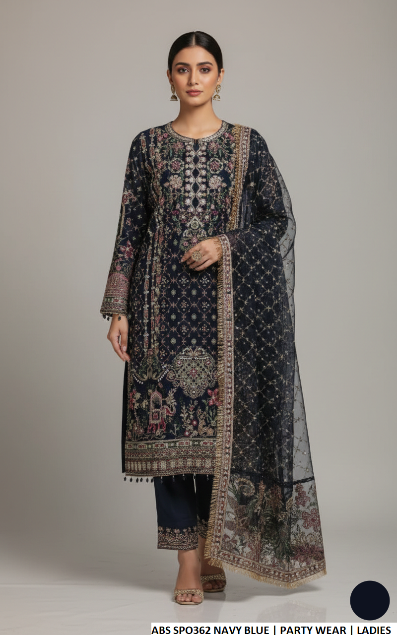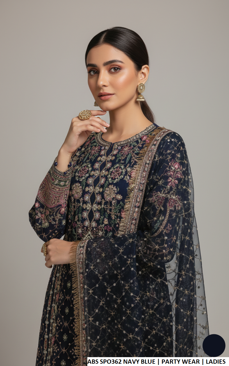 This elegant ensemble features a straight shirt crafted from premium chiffon fabric, paired with a comfortable viscose trouser for a refined and graceful look. The outfit is complemented with a lightweight organza dupatta that enhances its overall charm. With a shirt length of 42 to 44 inches, it offers a modest and flattering silhouette. Weighing 1.050 kg, this outfit is ideal for festive occasions, formal gatherings, and special events.