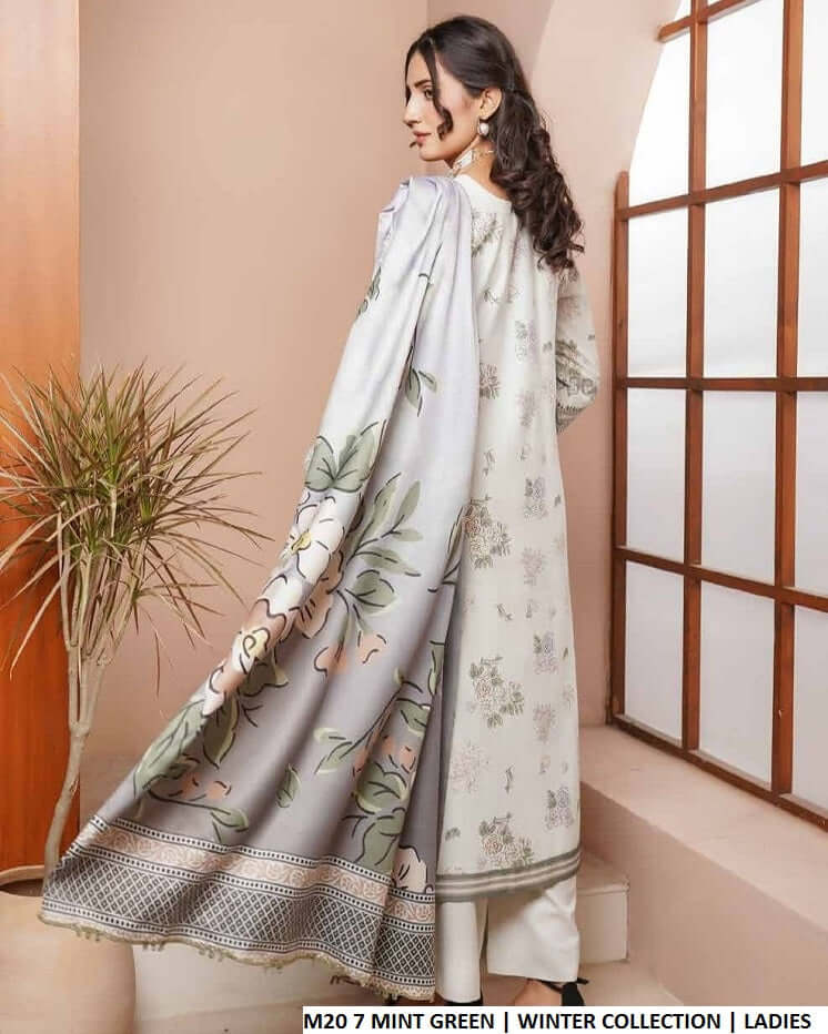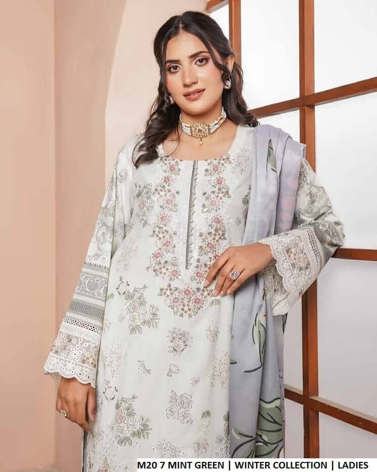 This outfit is made from high-quality dhanakh fabric for both the shirt and trousers, offering warmth and comfort during cooler seasons. It is paired with a soft wool shawl dupatta that adds a cozy yet elegant touch. Designed in a straight shirt style, the outfit features a shirt length of 43 / 45 inches and has an approximate weight of 0.750 kg, making it ideal for winter and seasonal wear.