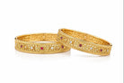 The Zaria Heritage Bangles are a celebration of timeless craftsmanship and classic elegance. Featuring intricate filigree detailing accented with delicate ruby and crystal stones, this pair reflects the richness of traditional design with a refined, modern finish.