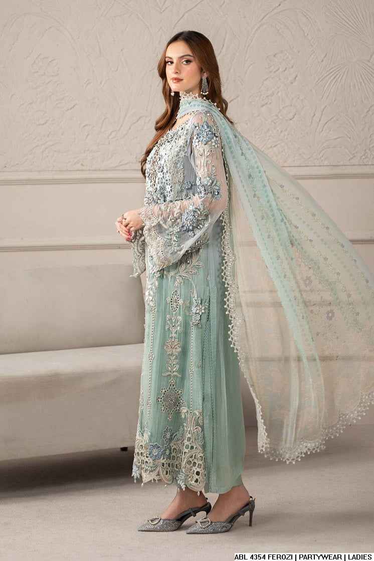 This graceful 3-piece ensemble is crafted for elegance and comfort. It features a Chiffon straight shirt with a flattering shirt length of 46 to 48 inches, paired with Grip fabric plazo trousers that offer both style and ease. A matching Chiffon dupatta completes the look, adding a touch of sophistication to your outfit. Weighing 1.300 kg, this outfit is perfect for formal gatherings, festive events, or stylish everyday wear.