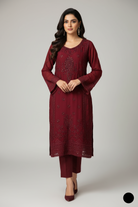 This beautifully designed outfit features a straight-cut silk shirt paired with soft grip fabric plazo trousers, offering both elegance and comfort. The look is completed with a flowy chiffon dupatta that adds a delicate touch to the ensemble. With a shirt length ranging from 40 to 42 inches and a total weight of just 0.650 kg, this outfit is ideal for festive events, parties, or formal gatherings, offering style without compromising comfort.