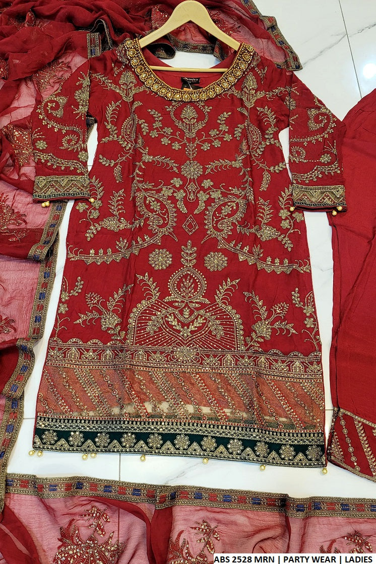 - This outfit features a straight shirt crafted from Chiffon fabric, paired with Grip fabric for the trouser and Chiffon for the dupatta. The shirt has a length of 38/40 inches, and the total weight of the ensemble is 0.900 kg.