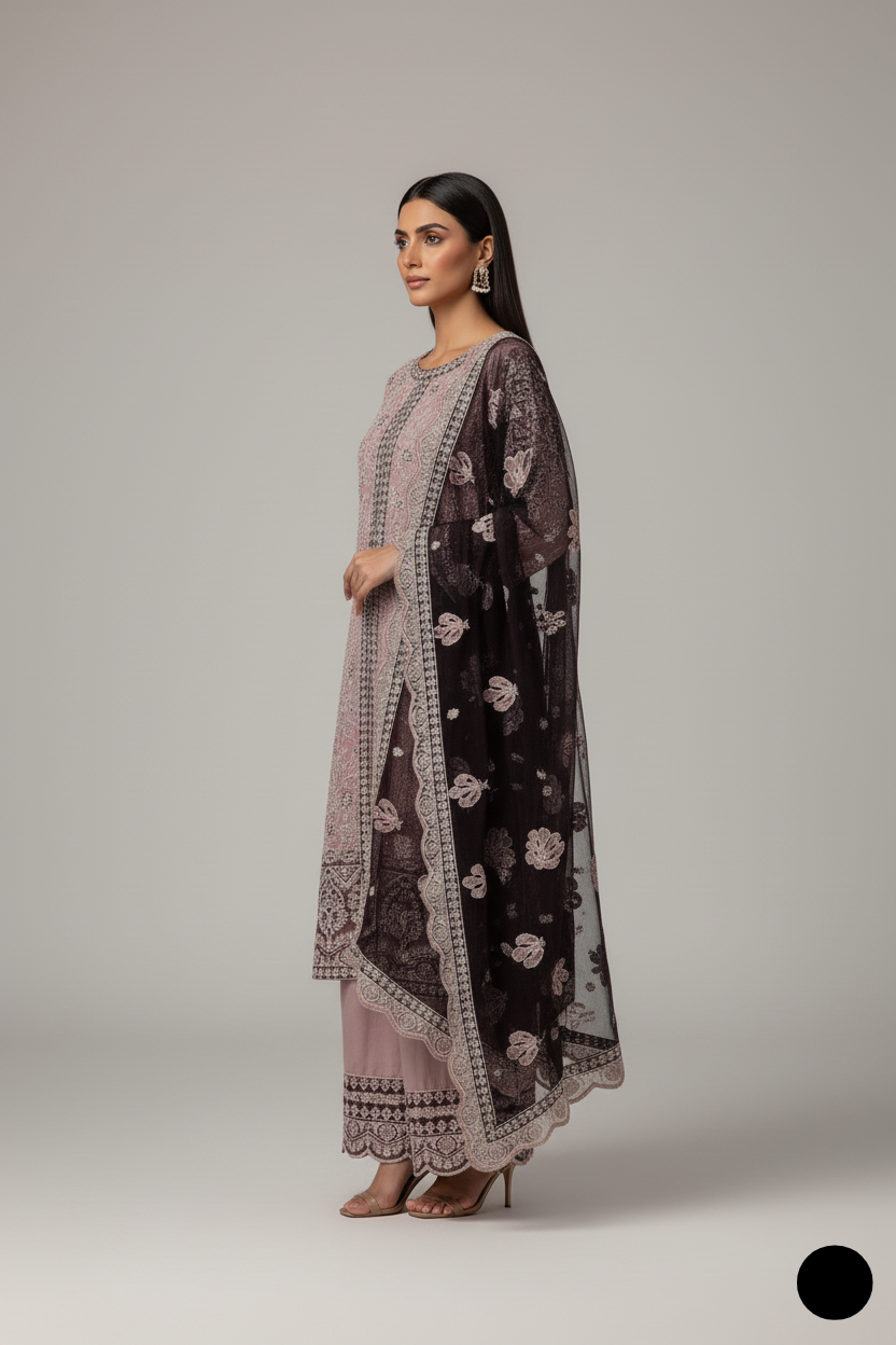 - This stylish ensemble features a sophisticated straight shirt crafted from elegant chiffon fabric, offering a graceful and refined look. With a flattering length of 46 to 48 inches, the shirt creates a sleek and modern silhouette. Paired with flowy plazo trousers made from comfortable grip fabric, the outfit ensures both style and ease of movement. A matching chiffon dupatta adds an extra touch of elegance, completing the ensemble beautifully. With a total weight of approximately 1.300 kg, this outfit is perfect for those who appreciate timeless sophistication with a contemporary flair, making it an excellent choice for special occasions.