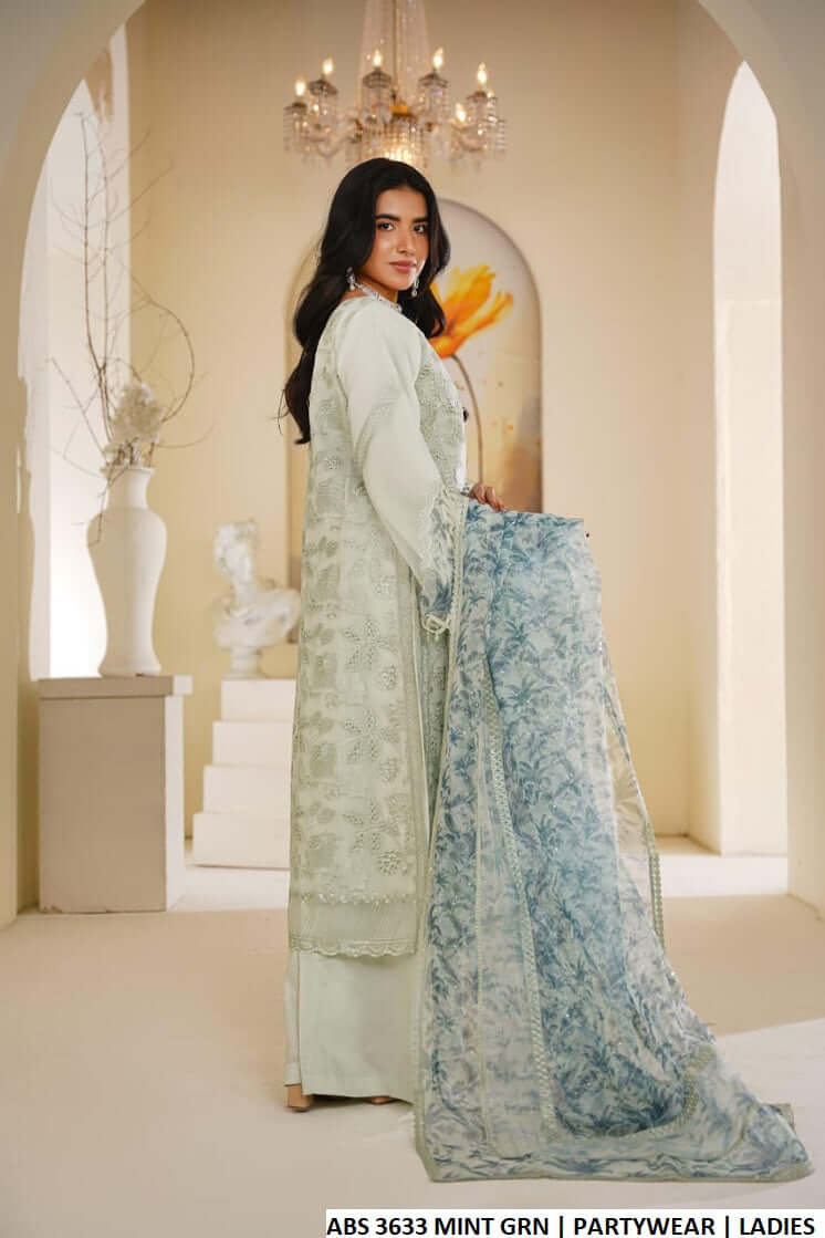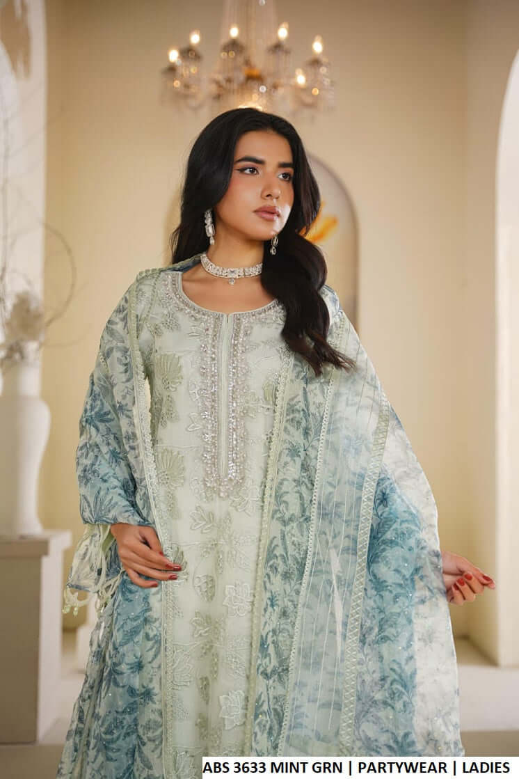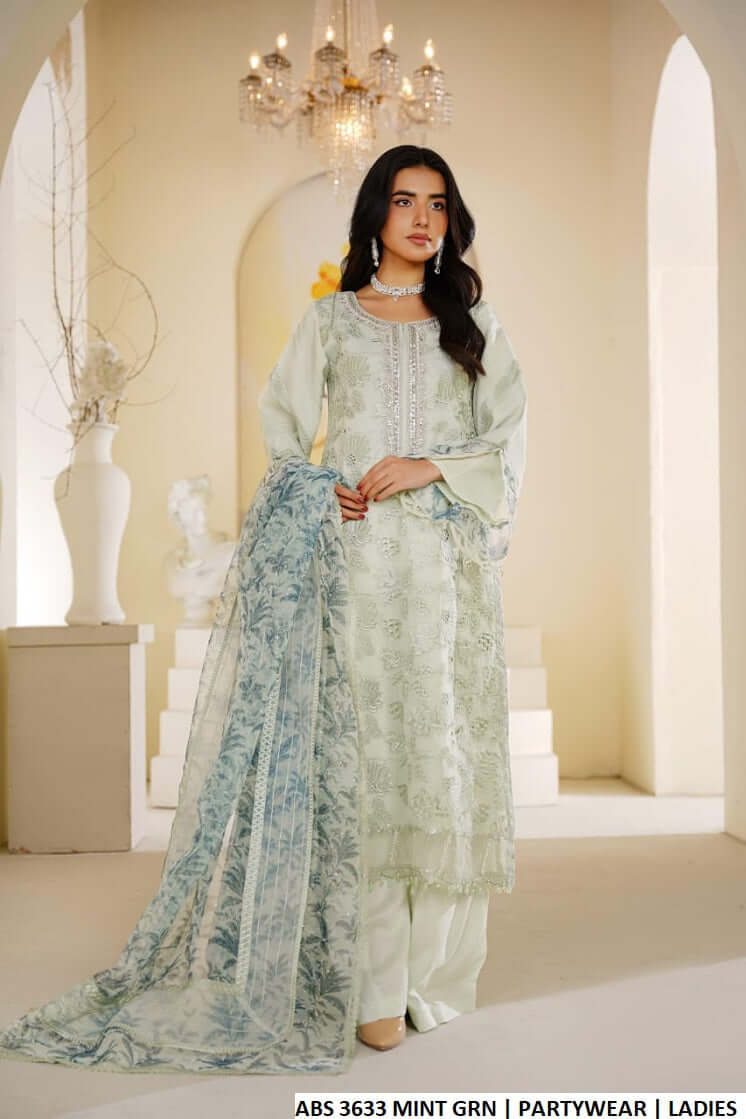 This elegant outfit is crafted with premium organza fabric for the shirt and dupatta, offering a graceful and luxurious look, while the grip trouser ensures comfort and a smooth fall. Designed in a straight shirt style paired with a plazo, it provides a modern yet traditional appeal. With a shirt length ranging from 45 to 47 inches and a lightweight feel of approximately 1.050 kg, this ensemble is perfect for festive occasions and formal wear.
