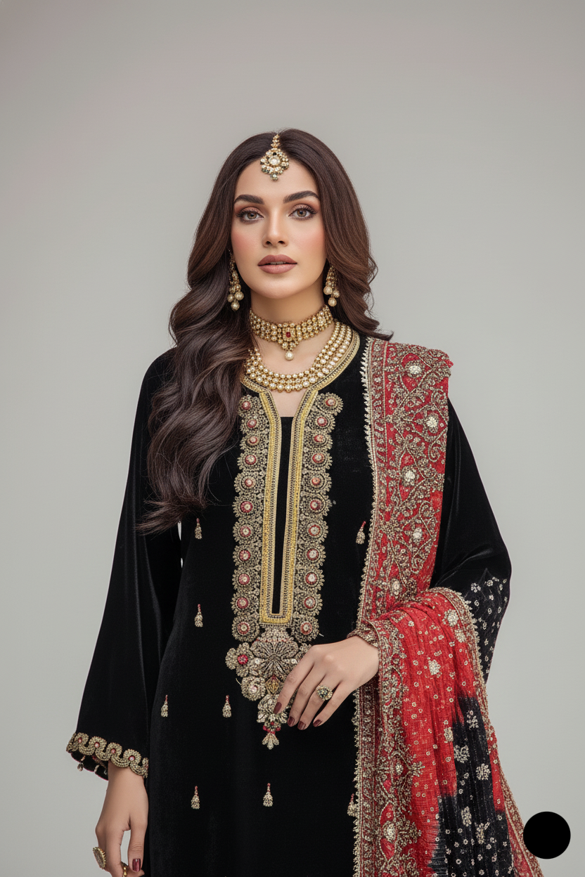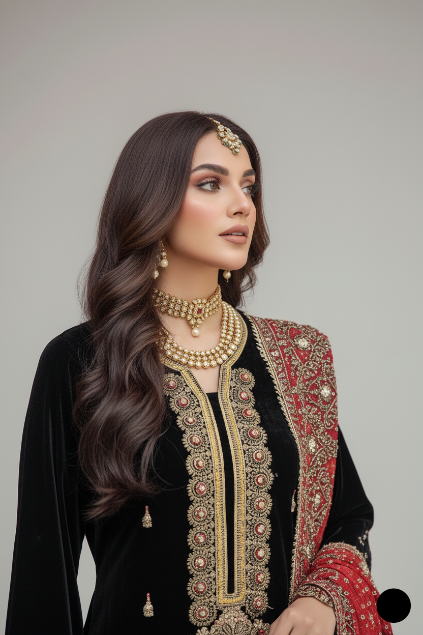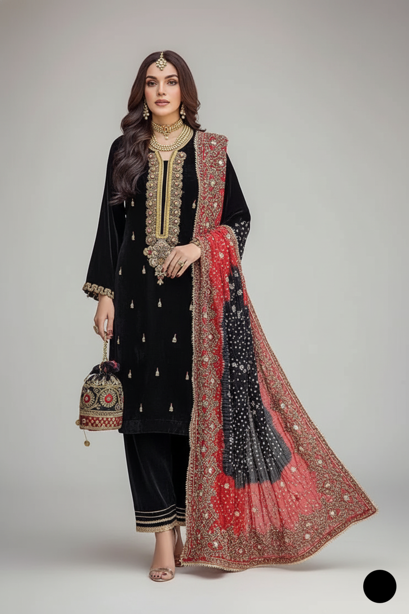 • Dupatta: Silk Chunri (Embroidered, Gotta & Mirror Work)