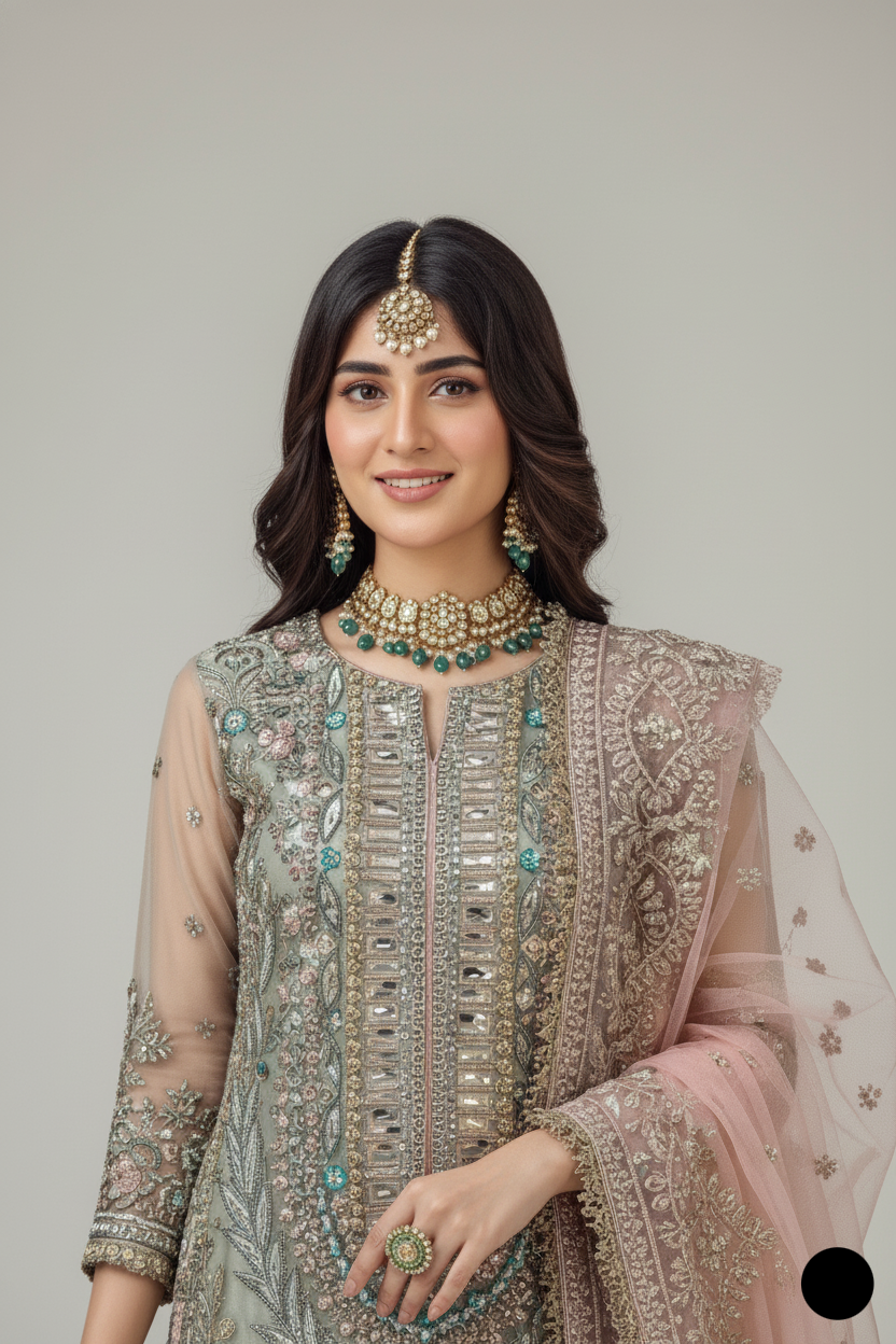 - Dupatta: Net (Embroidered, Gotta & Mirror Work)