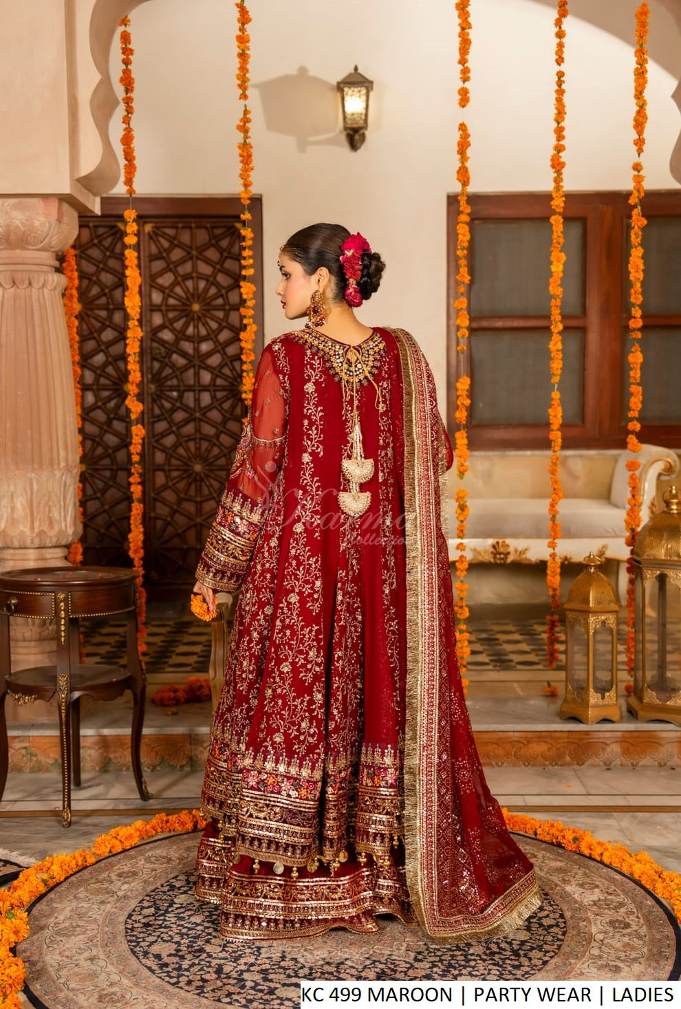 This elegant outfit features a beautifully designed chiffon long frock paired with comfortable viscose plazo trousers, creating a perfect balance of style and ease. The ensemble is completed with a matching chiffon dupatta that adds a soft and graceful touch. Styled as a long frock with plazo, the shirt length ranges between 48 to 49 inches. With an overall weight of approximately 2.6 kg, this outfit offers a rich and luxurious drape, making it ideal for festive and formal occasions.