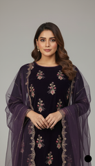 This graceful ensemble features a velvet shirt styled with a contemporary plazo trouser, creating an elegant and modern silhouette. The outfit is perfectly complemented by a sheer organza dupatta, adding softness and sophistication to the overall look. With a shirt length of 38/40 inches and a total weight of just 0.750 kg, this outfit offers a lightweight yet rich feel — ideal for festive events, formal gatherings, or evening functions.