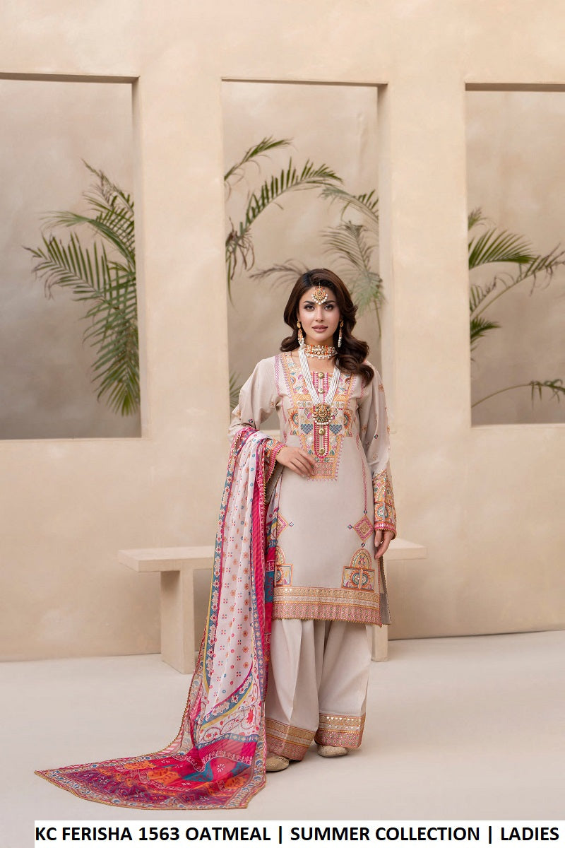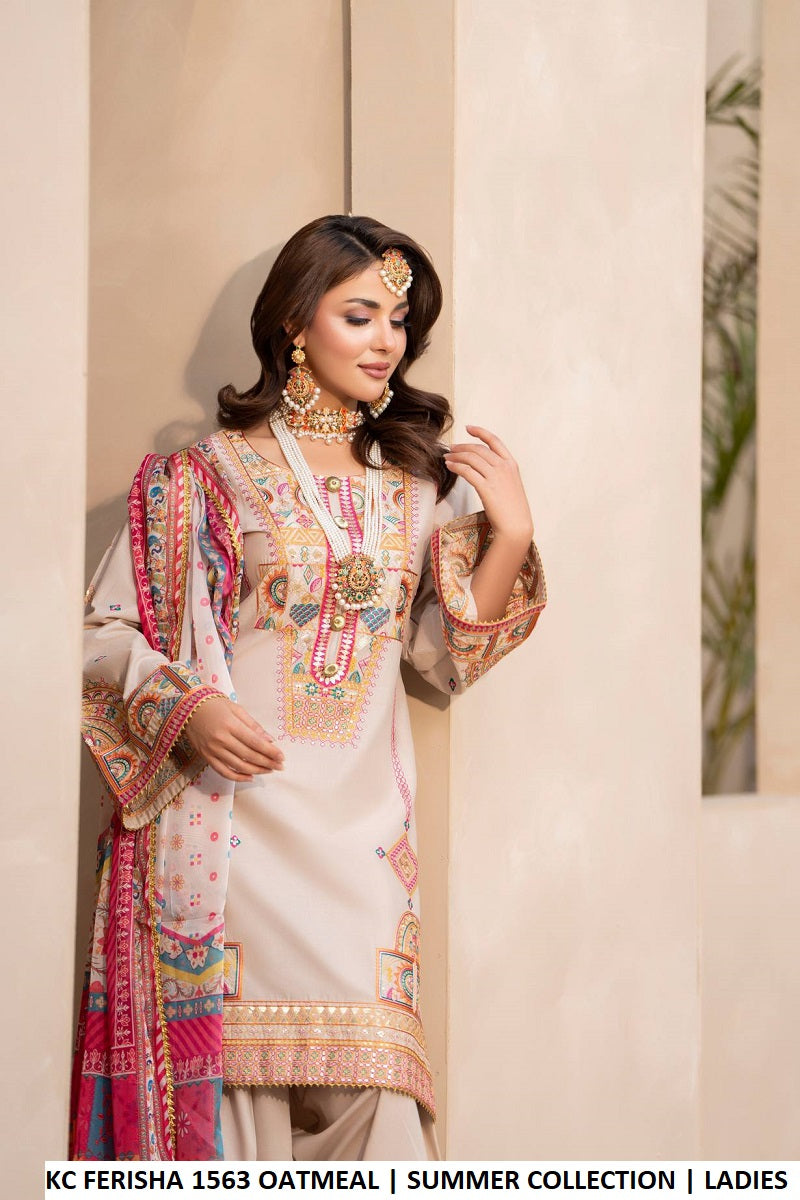 This elegant outfit features a cotton shirt paired with a matching cotton trouser for all-day comfort. It is complemented by a beautifully designed digital print silk dupatta, adding a touch of sophistication. Styled as a short shirt with a traditional farshi shalwar, the outfit offers a graceful and trendy look. The shirt length is available in 34 and 36 inches, with a lightweight feel of 0.750 KG, making it perfect for both casual and semi-formal wear.
