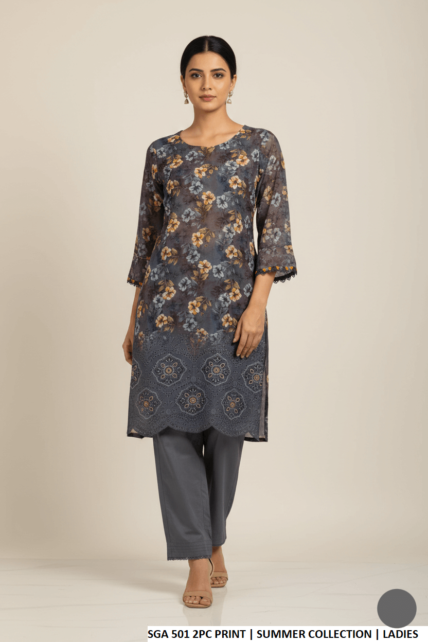 This elegant outfit features a soft lawn shirt paired with comfortable cotton trousers and 2 pieces of dupatta for a complete and versatile look. Designed in a straight shirt style with a shirt length of 38/40 inches, it is lightweight at 0.350 KG, making it ideal for casual wear, daily use, or festive occasions.