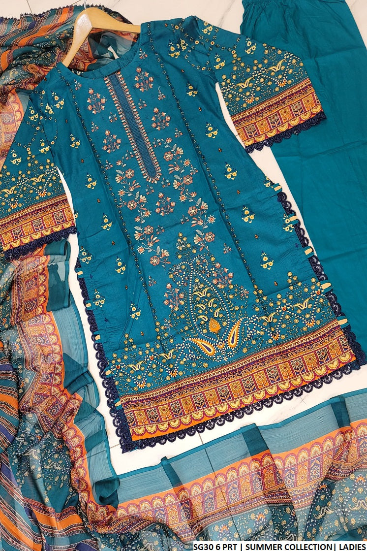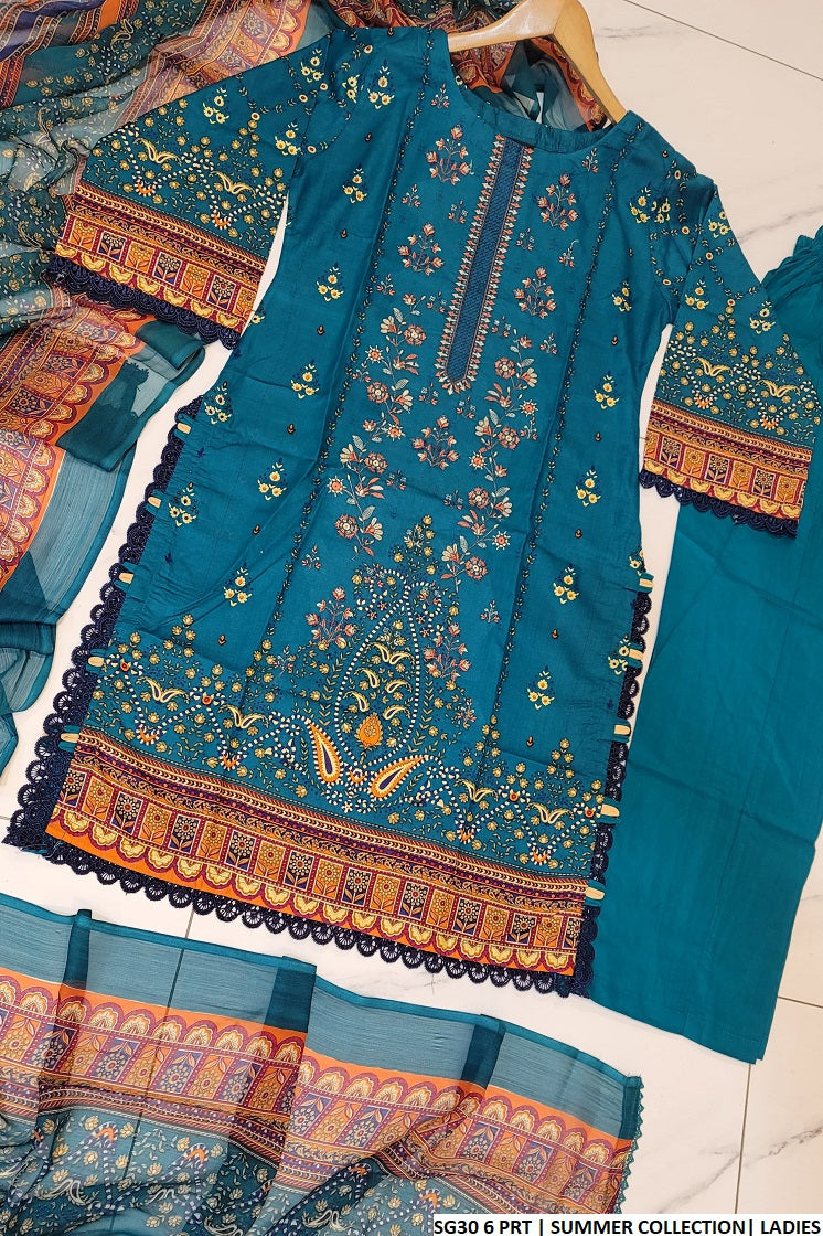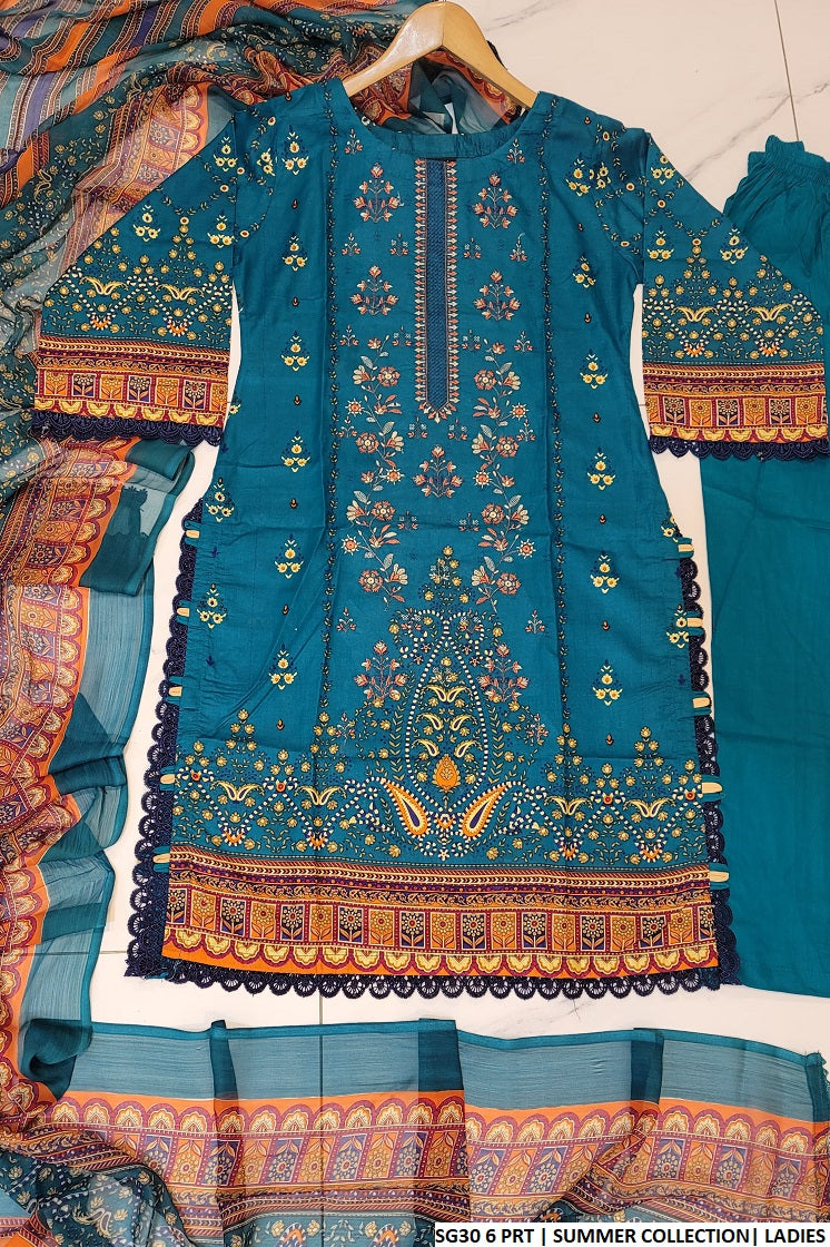 This elegant outfit is made from lawn fabric for both the shirt and trouser, ensuring a breathable and comfortable wear, perfect for warmer seasons. The straight shirt design, with a length ranging from 39 to 41 inches, offers a sleek and sophisticated look. Adding a stylish touch to the ensemble is a digitally printed dupatta, enhancing the overall aesthetic with vibrant patterns. With a total weight of 0.450 kg, this outfit is lightweight and easy to wear, making it an excellent choice for casual and semi-formal occasions.