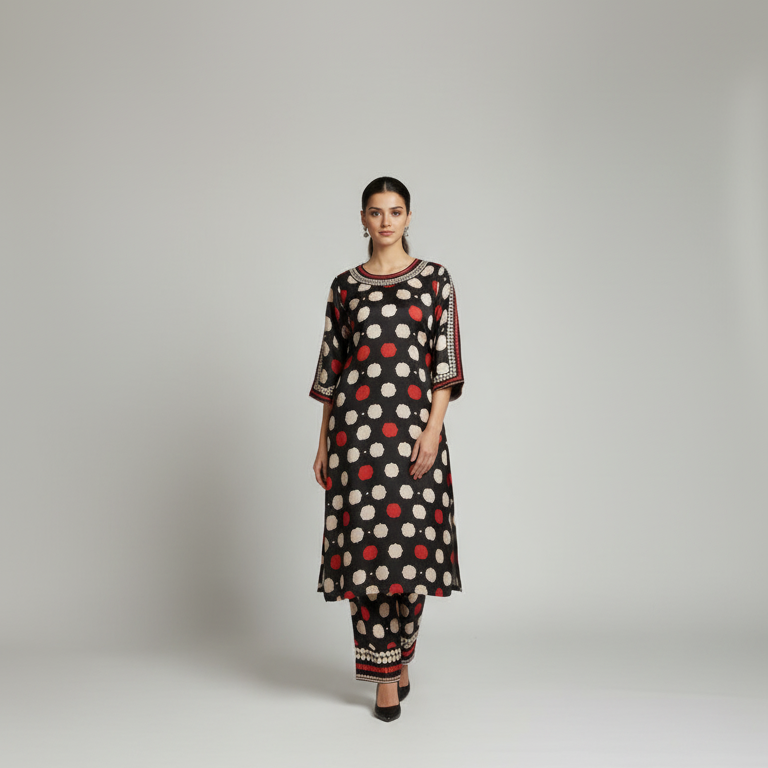 This elegant outfit features a luxurious silk shirt paired with matching silk trousers, creating a smooth and sophisticated look. Designed in a long shirt with plazo style, it offers both grace and comfort for formal and semi-formal occasions. The two-piece dupatta adds a touch of modern flair while maintaining traditional elegance. With a shirt length of 46/48 inches and a total weight of just 0.350 kg, this ensemble is lightweight and perfect for effortless styling.