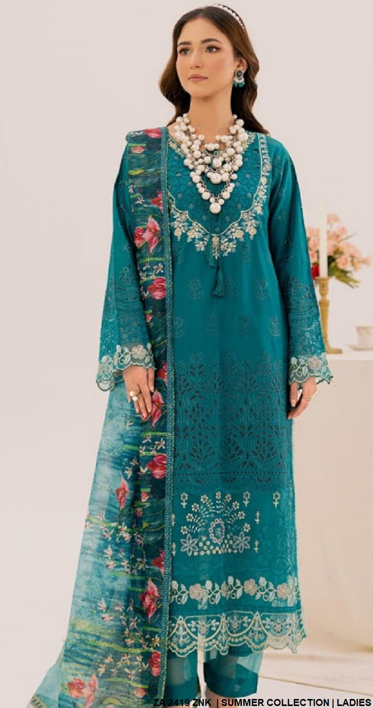 1. The shirt fabric is cotton, while the trouser fabric is also cotton. The dupatta is made of broshia organza. The style of the outfit is a straight shirt. The shirt length is 45/47 inches, and the weight of the outfit is 0.650 kg.