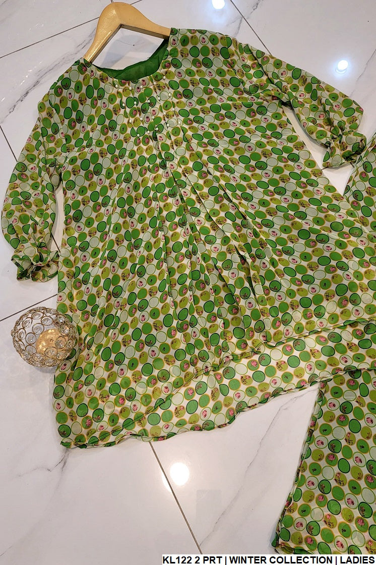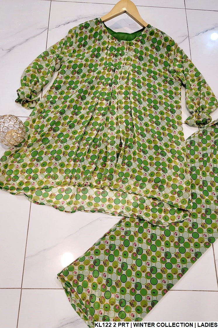 - The outfit is crafted from elegant Georgette Chiffon fabric, with both the shirt and trouser made from this lightweight, flowing material. The shirt is designed in a short frock style, paired with a plazo for a modern, fashionable touch. The shirt length measures 30/32, creating a flattering and trendy silhouette. The entire set weighs just 0.300 kg, ensuring comfort and ease of wear throughout the day. The dupatta is made from 2PC fabric, adding the perfect finishing touch to this stylish ensemble.