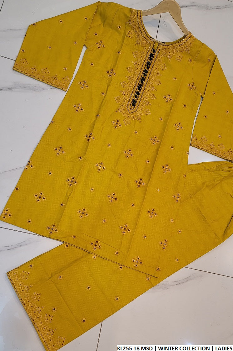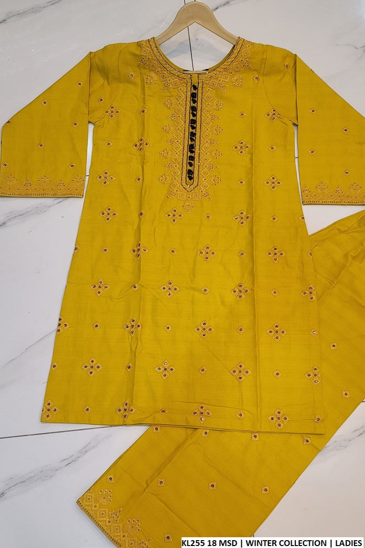 - This cozy outfit is crafted from premium winter cotton, offering warmth and style in equal measure. The ensemble features a straight shirt with a length of 36/38 inches, paired with matching trousers made from the same high-quality fabric for a harmonious look. Completing the outfit is a dupatta made from 2PC fabric, adding an elegant touch. With a total weight of 0.650 kg, this outfit is perfect for cooler weather, providing comfort, durability, and timeless style.