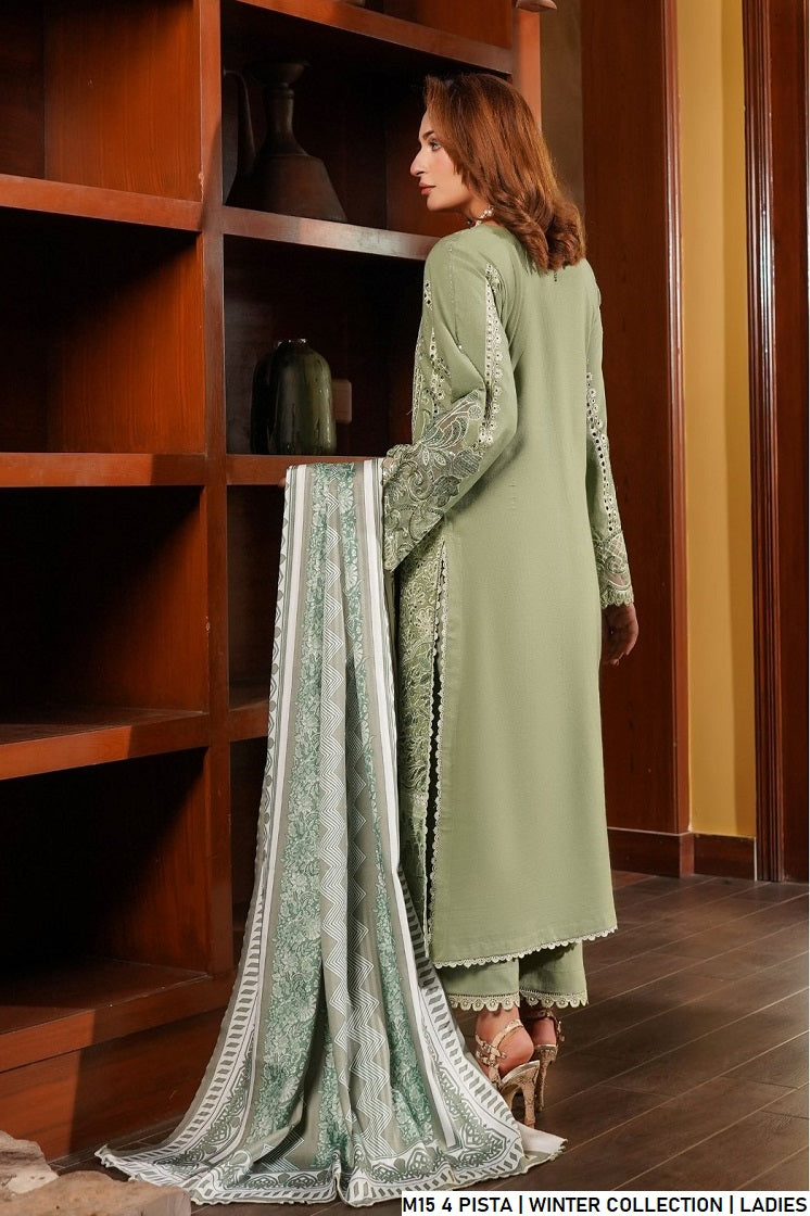 This elegant ensemble features a Dhanak fabric shirt paired with matching Dhanak trousers, offering both comfort and seasonal warmth. The look is completed with a Wool Shawl dupatta, perfect for cooler days. The outfit is styled as a Straight Shirt, with a shirt length of 44 to 46 inches, providing a modest yet fashionable silhouette. With a total weight of 0.950 kg, it’s lightweight enough for easy wear while still offering warmth and structure.