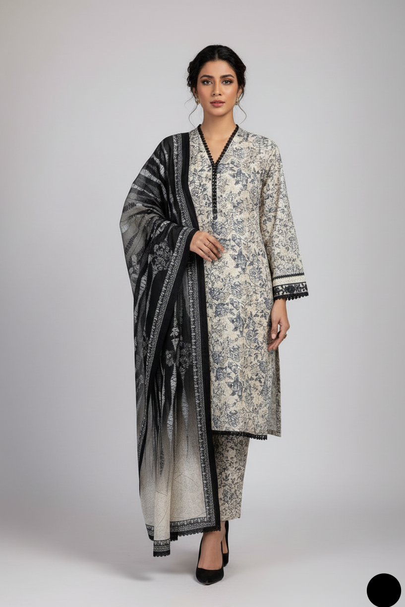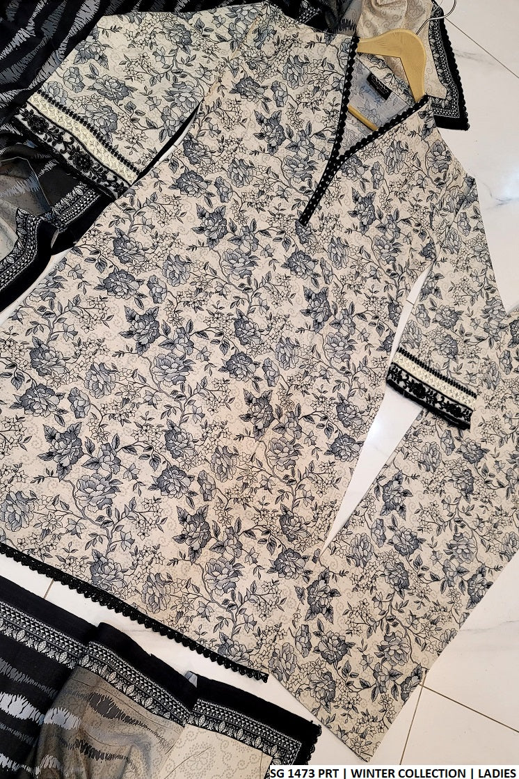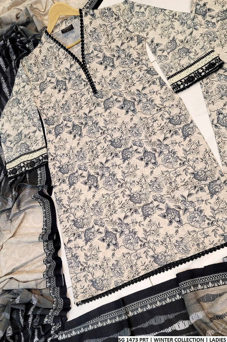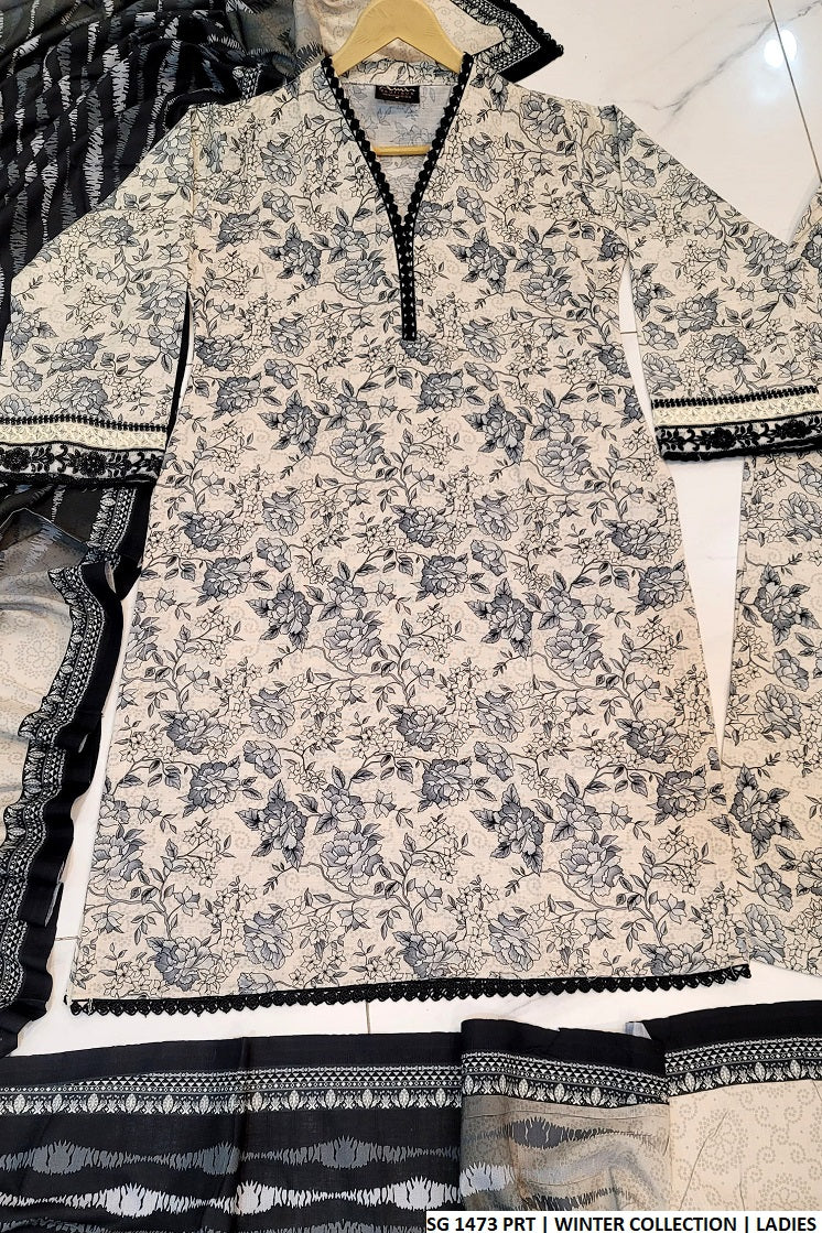 1. This outfit is tailored with premium Sulb Khaddar fabric, offering a perfect blend of comfort and elegance. The straight-style shirt is designed in lengths of 38 or 40 inches, ensuring a flattering fit for various preferences. The trousers and dupatta are also crafted from Sulb Khaddar, maintaining a cohesive and luxurious look throughout the ensemble. With a total weight of 0.850 kg, this attire is both substantial and comfortable, making it an excellent choice for any occasion.