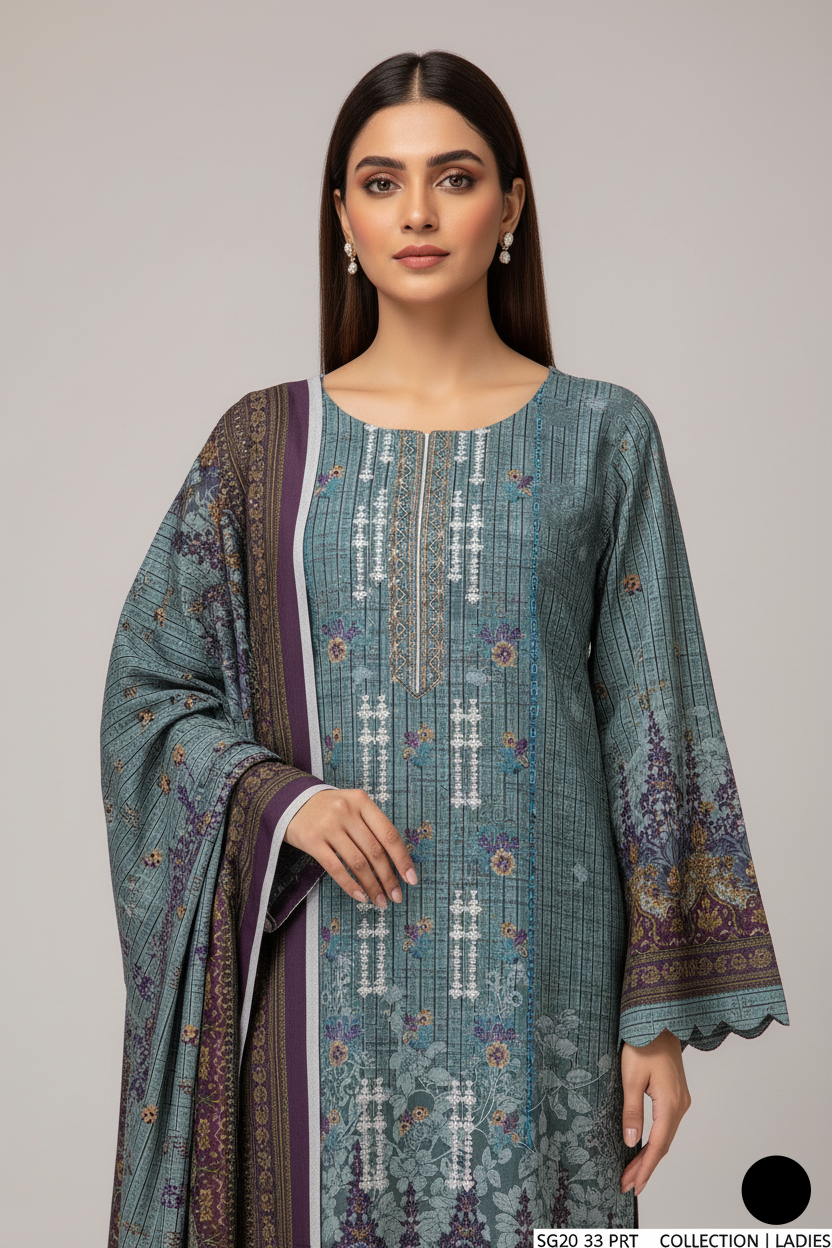 • This outfit features a Straight Shirt made from high-quality Dhanak fabric, offering a perfect blend of style and comfort. The shirt comes in a length of 40 to 42 inches, providing a flattering fit for various body types. It is paired with matching Dhanak trousers, creating a coordinated look. The ensemble is completed with a beautiful Dhanak Shawl, adding an elegant touch. Weighing 0.750 kg, this outfit is ideal for both casual and semi-formal occasions, combining modern aesthetics with ease of wear.