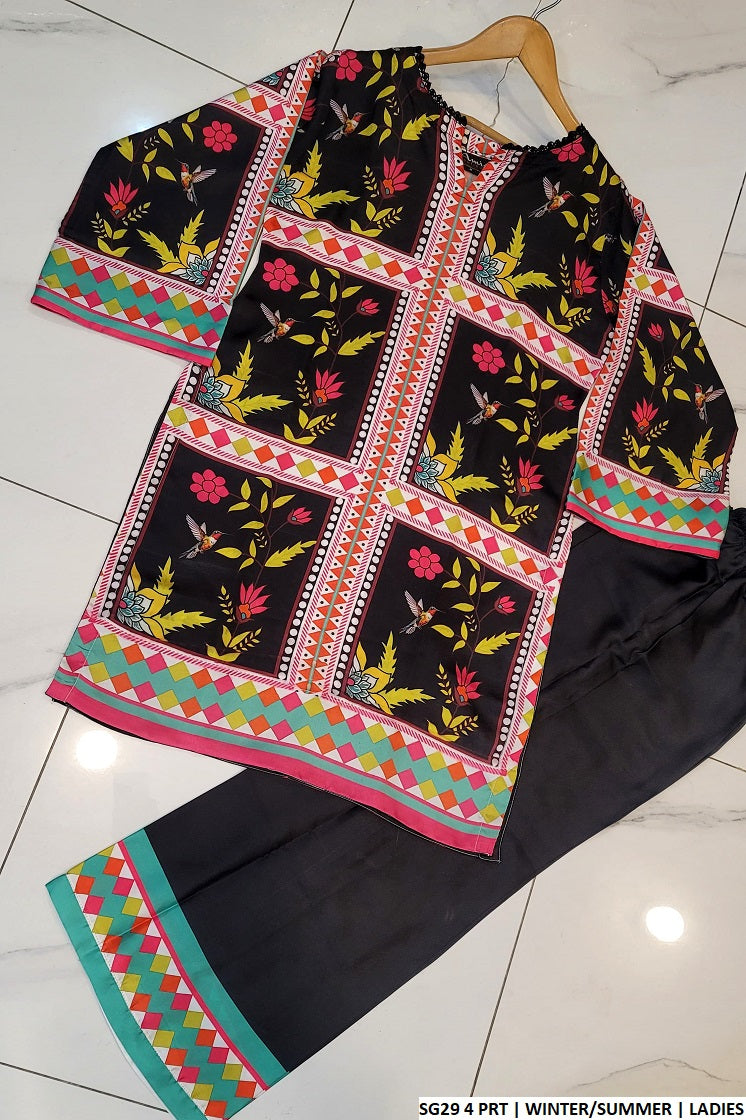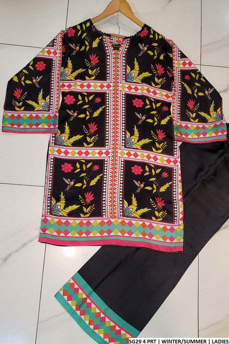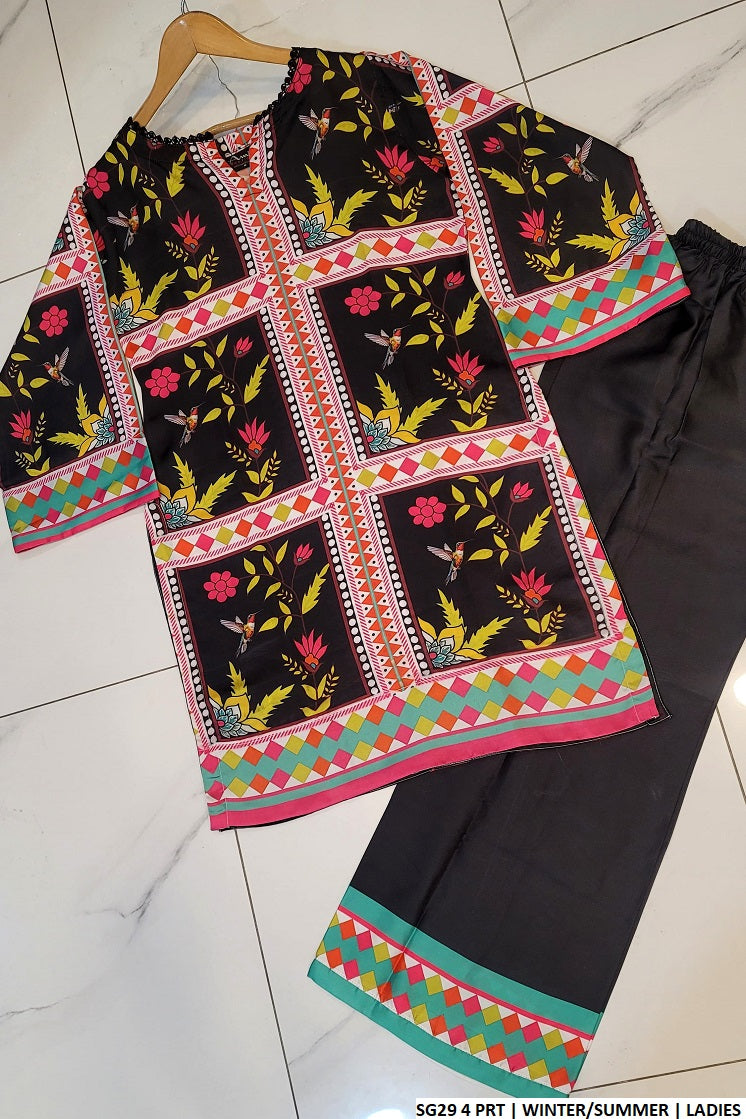 - This elegant ensemble features a silk fabric straight shirt, providing a luxurious and smooth texture. The shirt, with a length of 38 to 40 inches, ensures a flattering and comfortable fit. Paired with silk trousers, the outfit offers a cohesive and sophisticated look. Completing the ensemble is a matching 2PC dupatta, adding an extra touch of refinement. Weighing just 0.350 kg, this outfit strikes the perfect balance between style and ease, making it an ideal choice for formal events or evening gatherings where both elegance and comfort are key.
