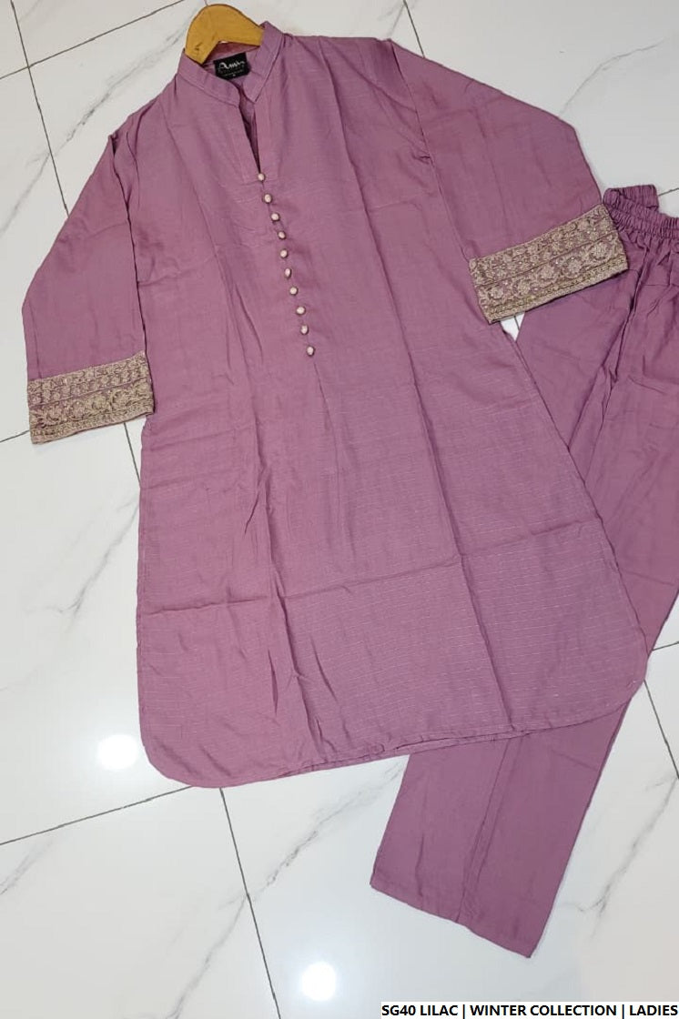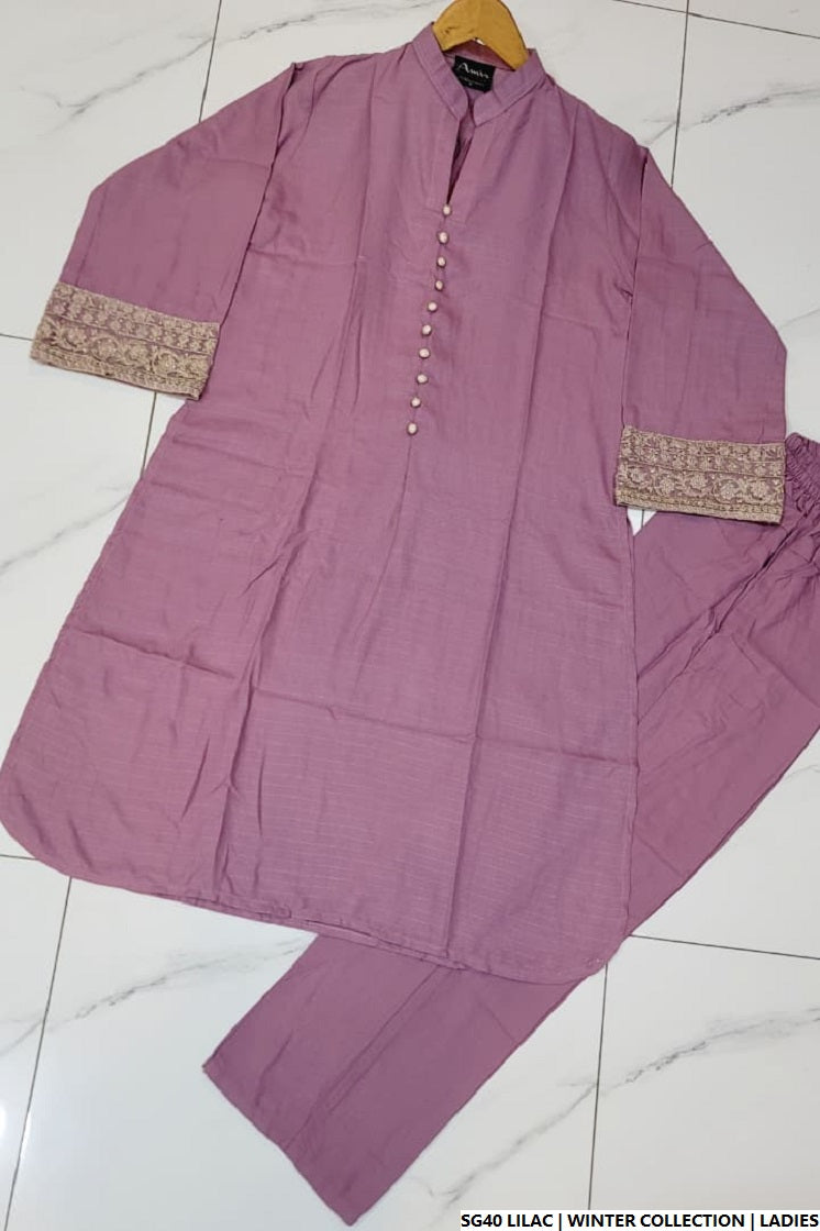 This beautifully crafted 2-piece outfit is made from premium Dhanak fabric, offering a soft, warm feel that's perfect for the cooler seasons. Featuring a flowy goal daman shirt with a shirt length of 41 to 43 inches, it delivers a graceful and traditional look. The matching Dhanak trousers complete the ensemble, making it an ideal choice for casual to semi-formal winter wear. Weighing just 0.450 kg, it’s lightweight yet seasonally appropriate, providing both comfort and style for everyday use.