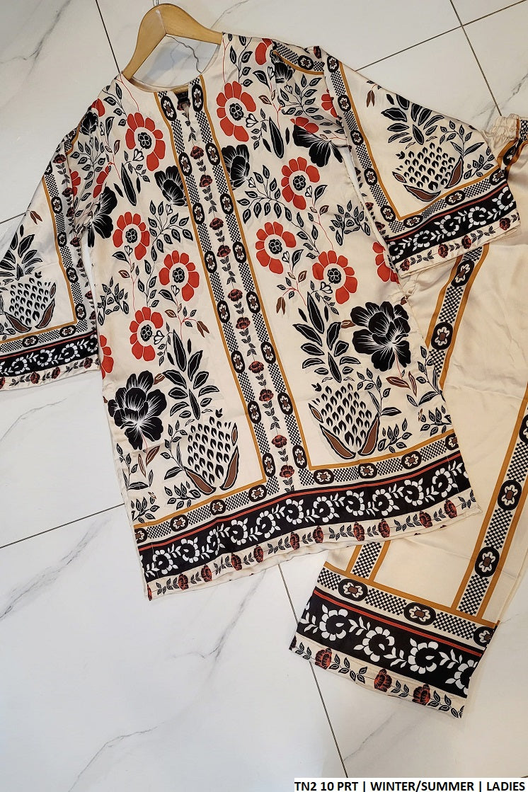 1. This elegant ensemble features a straight shirt style crafted from luxurious Silk fabric, offering a smooth and sophisticated texture. The trousers are also made from Silk, creating a coordinated and stylish look. The dupatta, made from 2PC fabric, adds a delicate and refined touch to the outfit. The shirt length is 34/36 inches, ensuring a flattering and comfortable fit. With a weight of just 0.300 kg, this lightweight outfit is perfect for formal or semi-formal occasions, seamlessly combining style, comfort, and grace.....