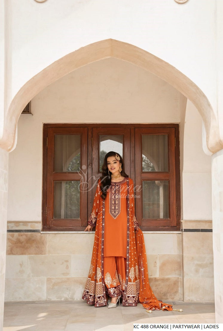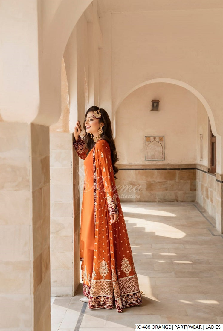 This luxurious ensemble features an open long maxi crafted from premium chiffon fabric, paired with a grip trouser and a matching chiffon dupatta. The open long maxi style offers a regal and graceful look, perfect for formal events and festive occasions. With a shirt length of 53 to 55 inches, it provides a flowing, elegant silhouette that enhances every movement. Weighing 1.800 kg, this outfit combines sophistication, comfort, and timeless charm, making it an ideal choice for weddings, receptions, or evening gatherings.