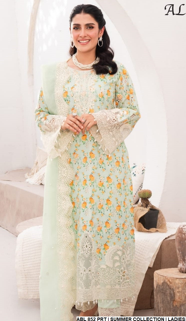 1. This elegant straight shirt is crafted from soft and breathable lawn fabric, offering a perfect combination of style and comfort. The coordinating lawn fabric trousers provide a relaxed yet refined fit, making the ensemble both chic and comfortable. The outfit is beautifully complemented by a delicate organza dupatta, adding a touch of sophistication and grace. With a shirt length of 47 to 49 inches, it provides a flattering and versatile fit for various occasions. Weighing just 0.800 kg, this lightweight ensemble ensures comfort throughout the day while maintaining a stylish, fashionable look.
