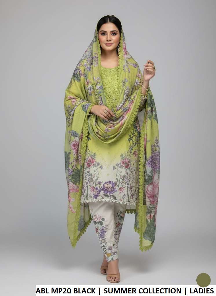 This stylish outfit features a straight shirt paired with a matching trouser for a modern and comfortable look. The shirt and trouser are made from lightweight and durable poly lawn fabric, making it easy to wear and maintain. It is complemented with a beautiful digital print silk dupatta that adds a vibrant and elegant touch to the overall outfit. The shirt length is available in 36 to 38 inches, and the complete outfit weighs approximately 0.650 KG, making it comfortable and suitable for casual and semi-formal occasions.
