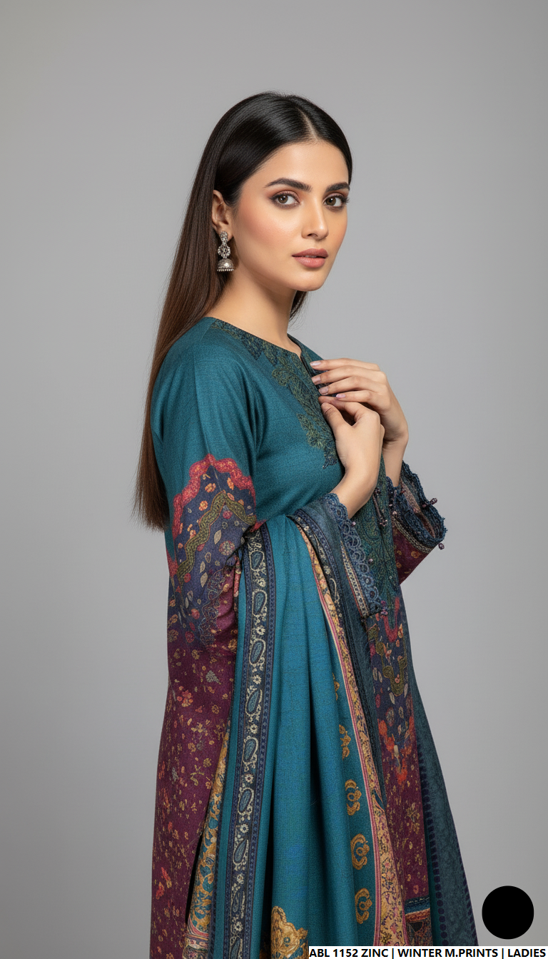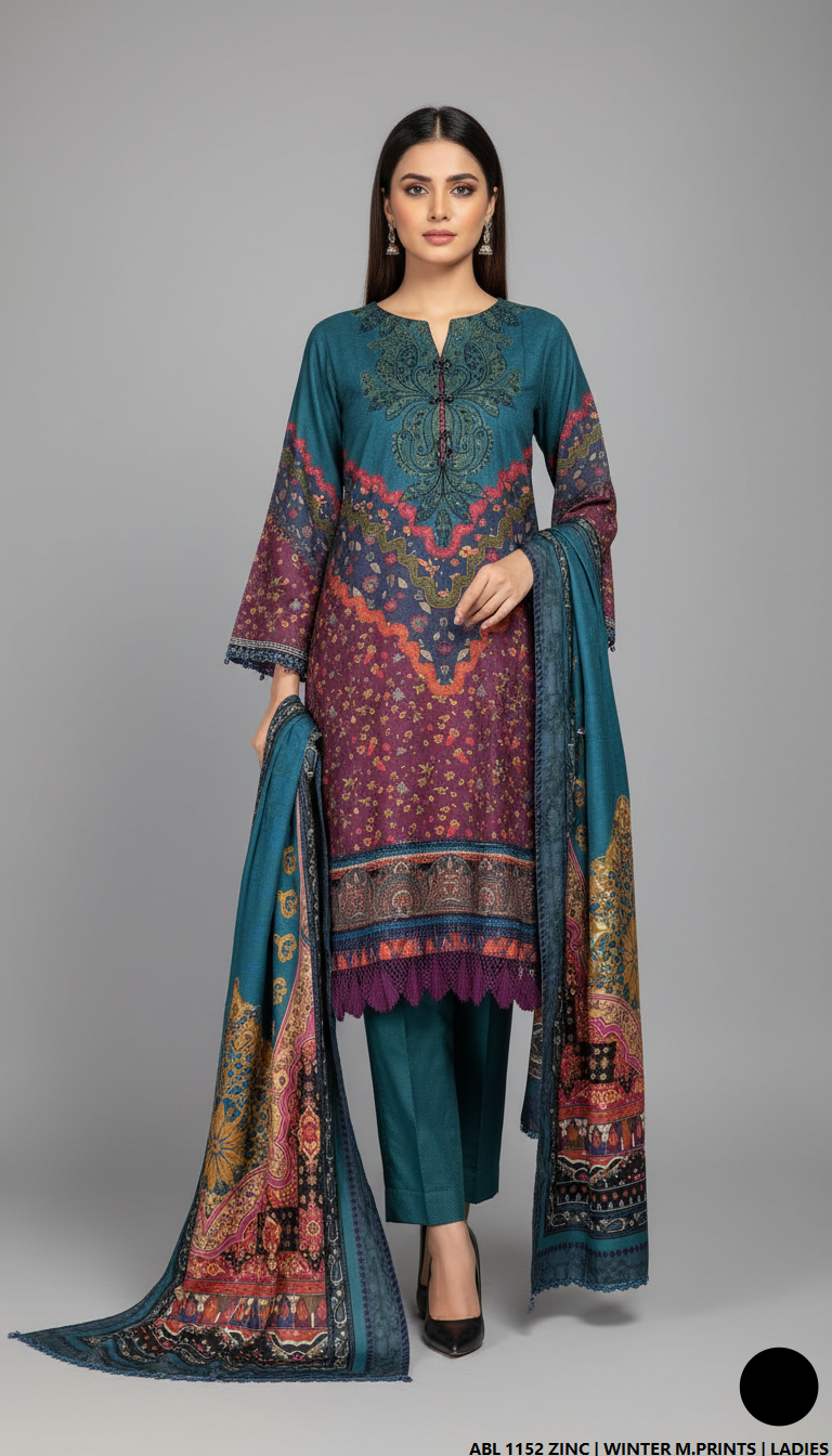 This elegant Khaddar 3-piece winter outfit showcases timeless sophistication and comfort. Crafted from high-quality Khaddar fabric, it features a long shirt design paired with a matching Khaddar trouser for a graceful and refined appearance. The outfit is complemented with a soft wool shawl dupatta, providing warmth and style during chilly days. With a shirt length of 47/49 inches and a total weight of 0.850 kg, this ensemble perfectly balances traditional elegance and winter comfort — an ideal addition to your seasonal wardrobe.