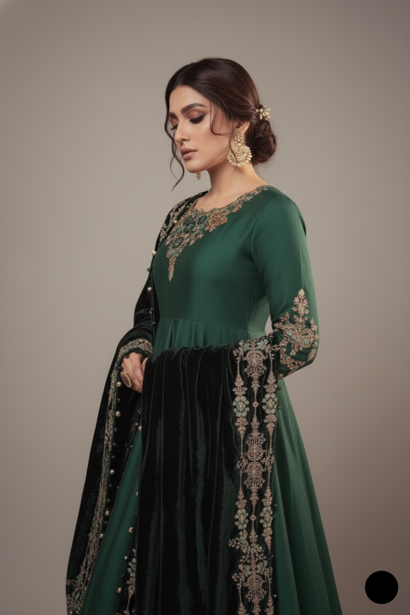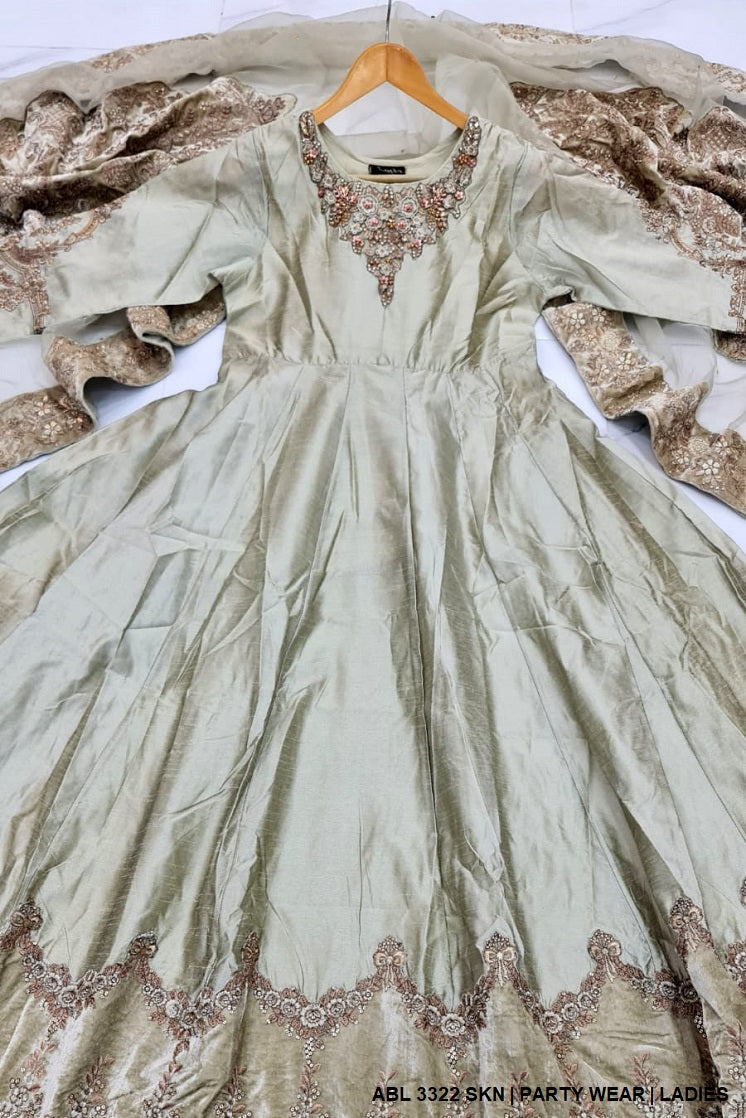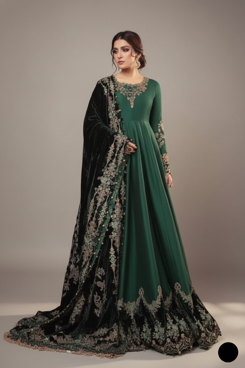 Make a statement with this stunning long maxi outfit, crafted with luxurious fabrics that elevate any look. The shirt is made from rich Katan fabric, offering a smooth, glossy finish, while the jacquard trousers bring in texture and depth with their intricate patterns. Paired with a delicate organza dupatta, this ensemble is perfect for weddings, festive occasions, or evening events. The 53-inch shirt length enhances the elegant silhouette, and the overall weight of 1.80 kg ensures a premium, high-quality feel.