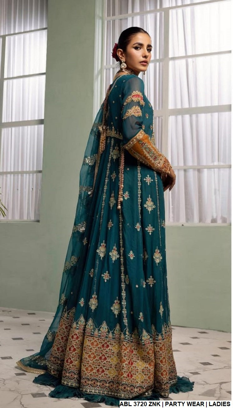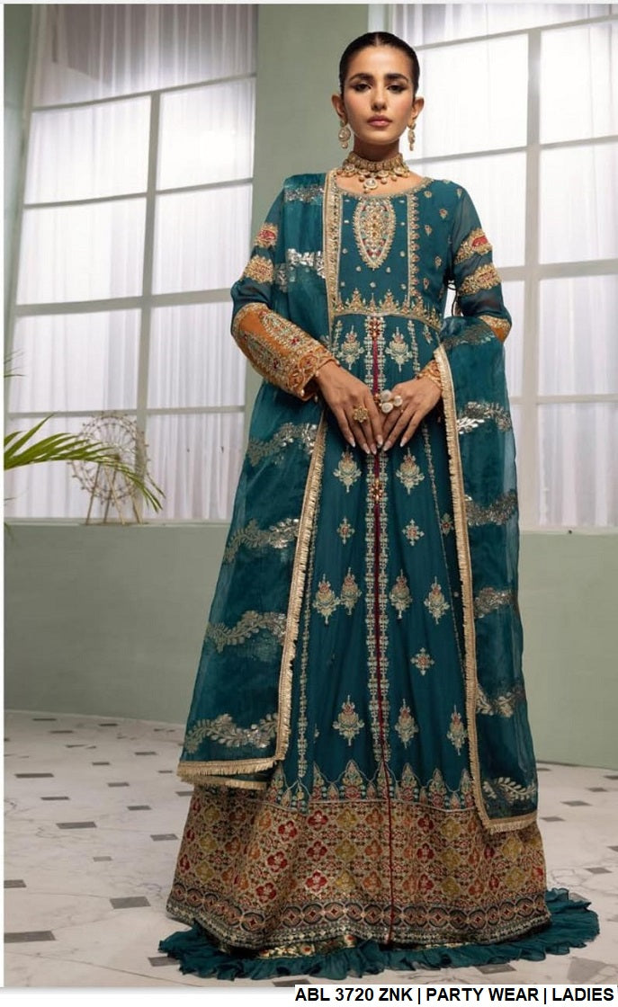 This stunning long maxi with sharara is crafted from elegant Chiffon, paired with Grip trousers and a Zari Organza dupatta. With a graceful 56-58 inch length and a lightweight 1.700 kg design, it blends sophistication and comfort effortlessly.