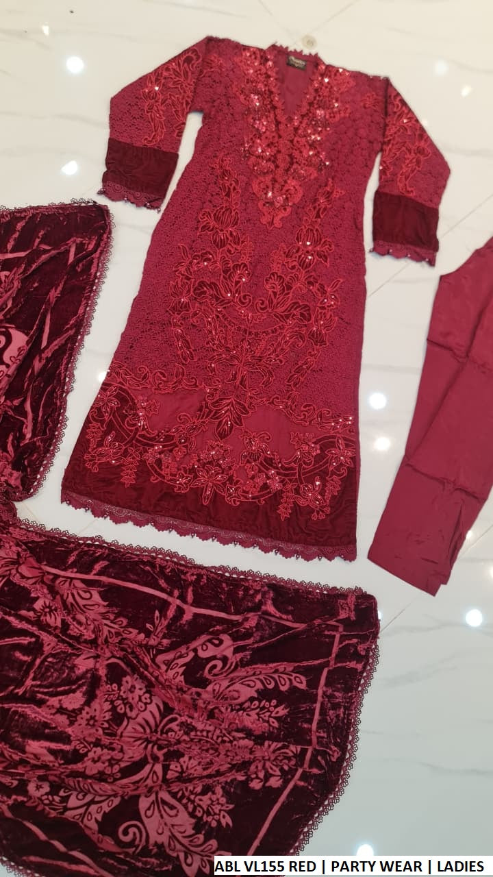 This elegant outfit features a straight-style shirt crafted from soft net fabric, paired with trousers made from premium grip fabric for a structured and polished look. The ensemble is completed with a luxurious Palachi shawl dupatta, adding grace and sophistication. The shirt length ranges between 48 to 50 inches, making it ideal for a modest yet stylish appearance. The total weight of the outfit is approximately 1.55 kg, ensuring a comfortable yet rich drape.