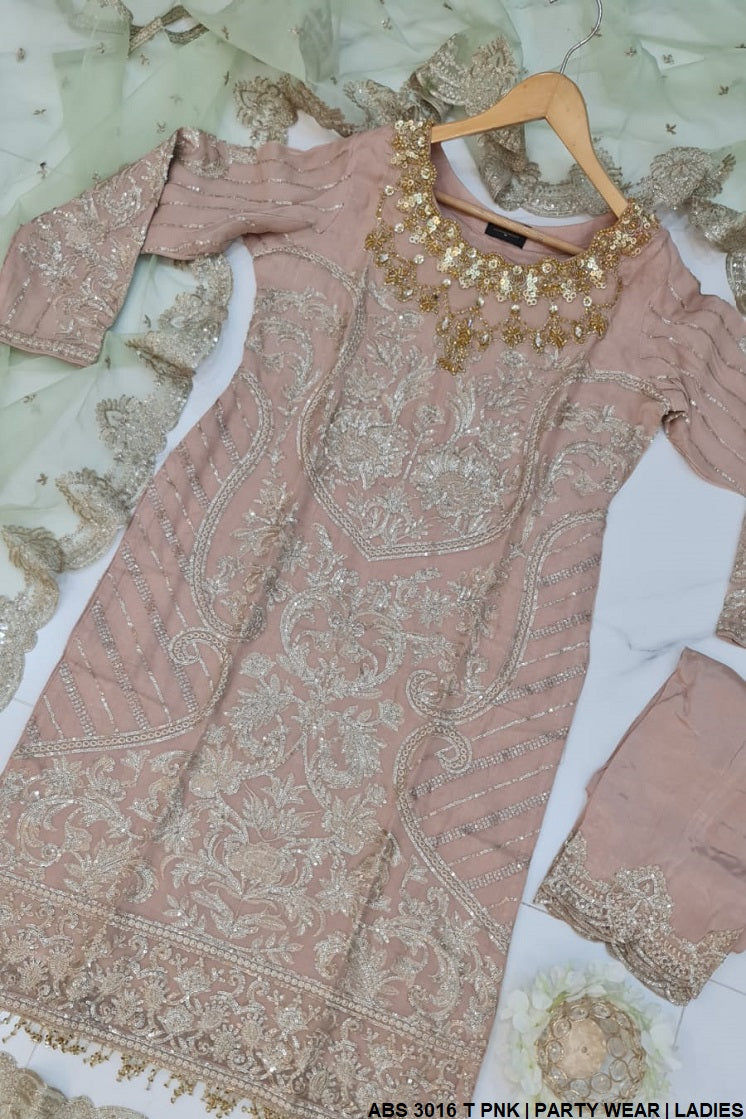 - This elegant ensemble features a shirt crafted from chiffon, offering a lightweight and graceful drape. With a length of 42 to 44 inches, the shirt provides a refined and flattering silhouette. It is paired with trousers made from grip fabric, ensuring both comfort and a structured fit. Completing the outfit is a delicate organza dupatta, adding a touch of sophistication and charm. Weighing approximately 0.750 kg, this ensemble is designed to offer effortless style and comfort, making it an ideal choice for any occasion.