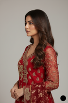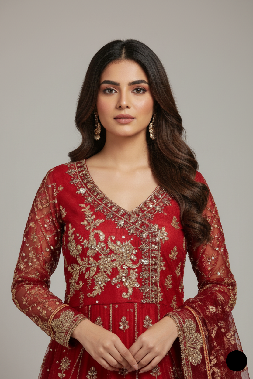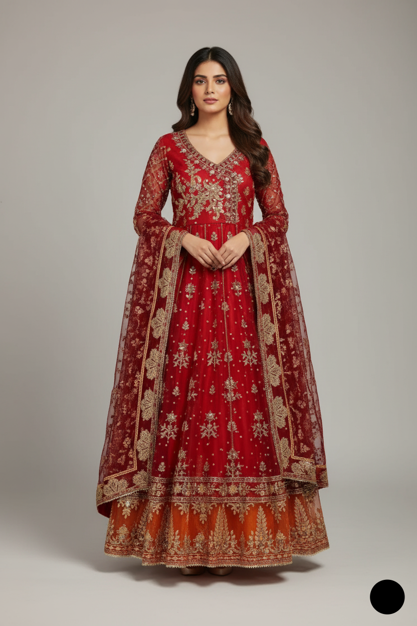 - This exquisite and elegant outfit features a shirt made from delicate organza fabric, paired with trousers crafted from grip fabric, offering a unique blend of softness and structure. The dupatta, also made from organza fabric, adds a touch of sophistication and a flowing texture to the ensemble. Designed in an angrakha style frock, the outfit provides a traditional yet modern silhouette, with length options of 40 or 42 inches to ensure a perfect fit. The entire set weighs approximately 1.600 kg, making it substantial yet comfortable for a polished and stylish appearance. This combination of organza fabric, grip trousers, and the angrakha style frock creates a timeless and chic outfit suitable for special occasions